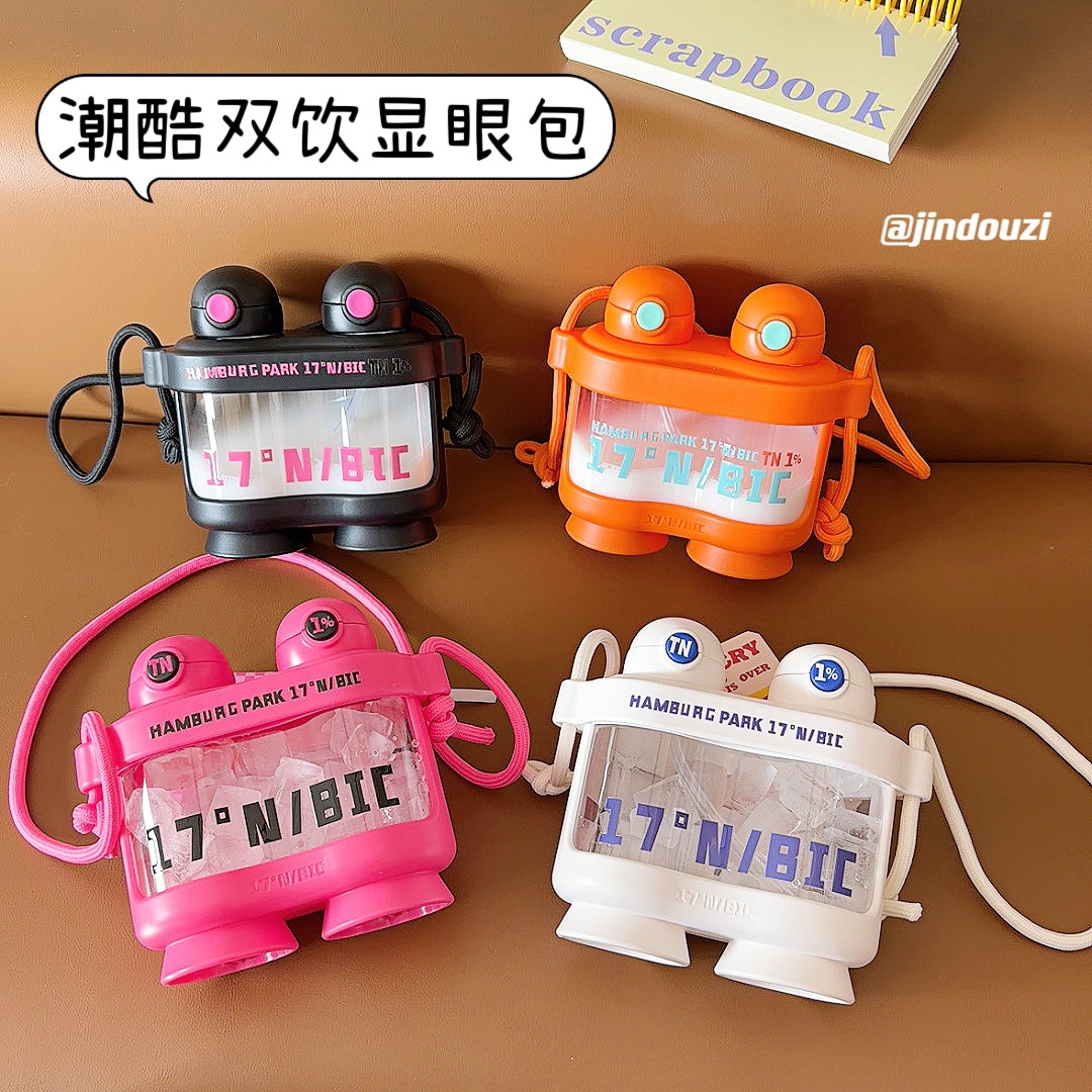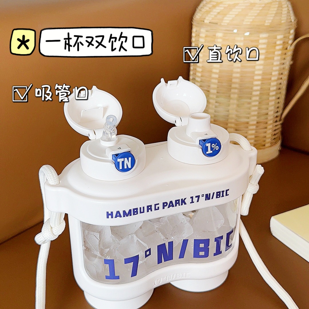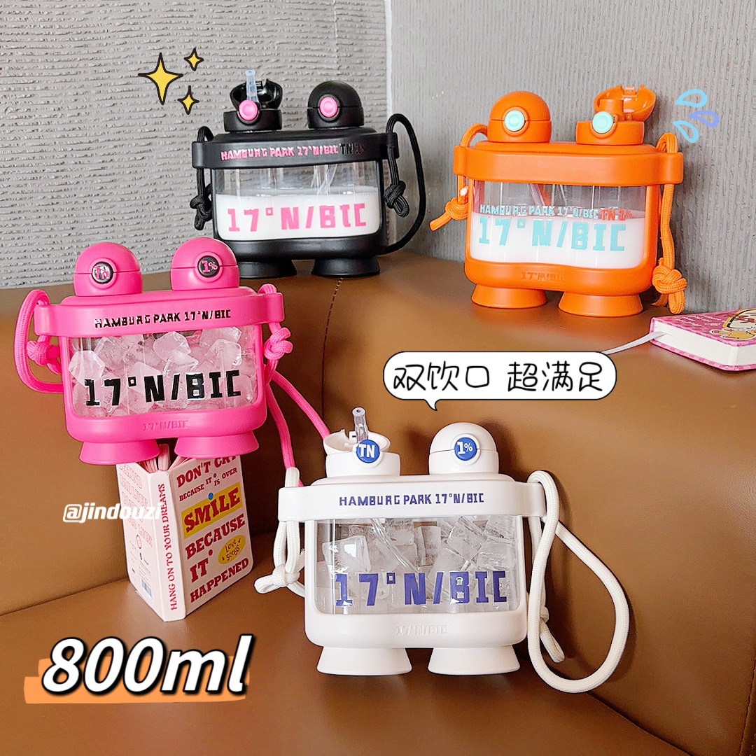 创意双饮水杯学生高颜值女生塑料杯大容量时尚儿童吸管水壶