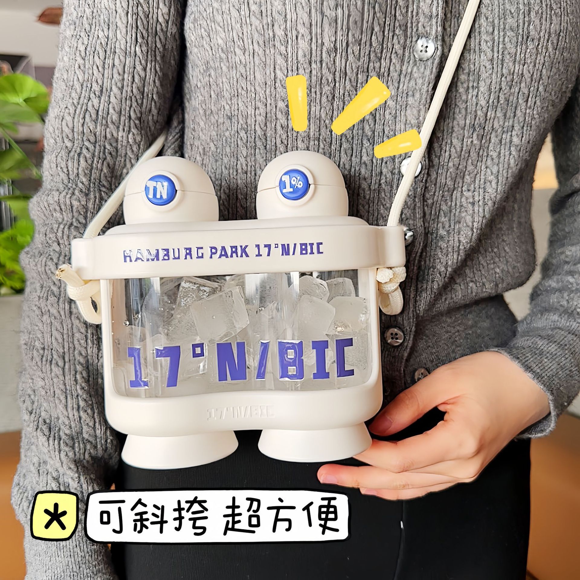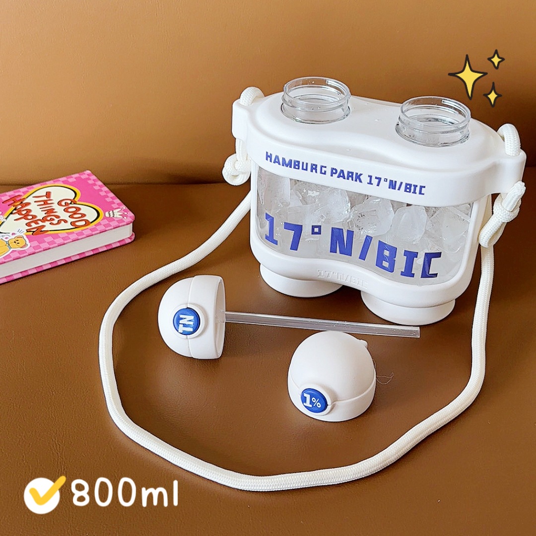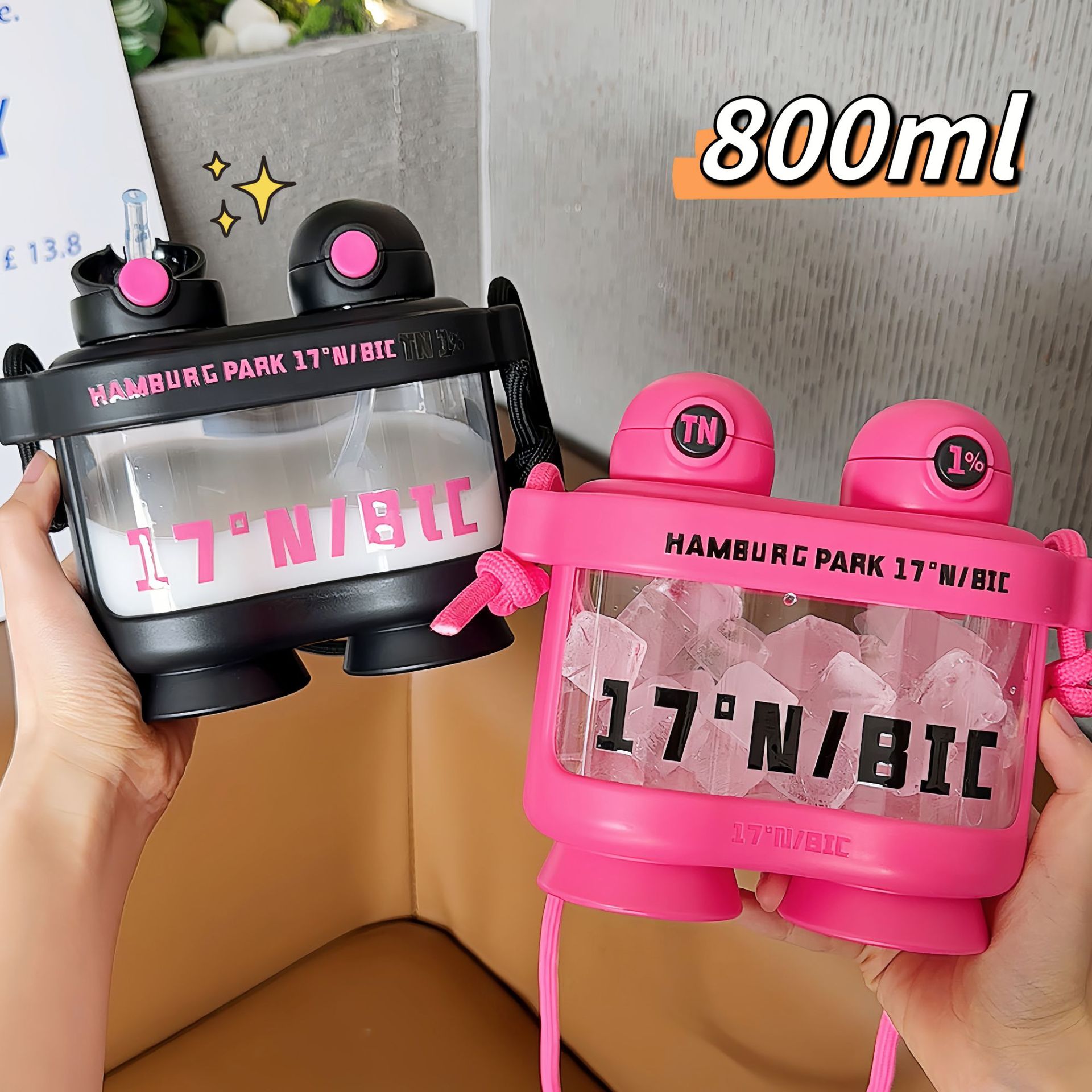 创意双饮水杯学生高颜值女生塑料杯大容量时尚儿童吸管水壶