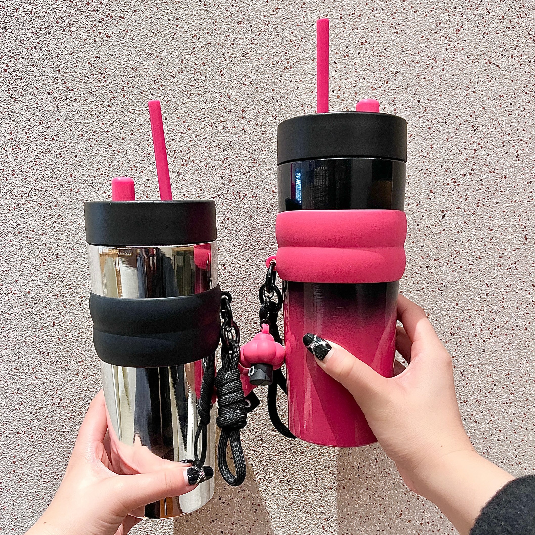 保温杯女2024新款大容量车载咖啡随行杯男316不锈钢儿童吸管水杯