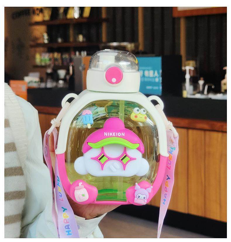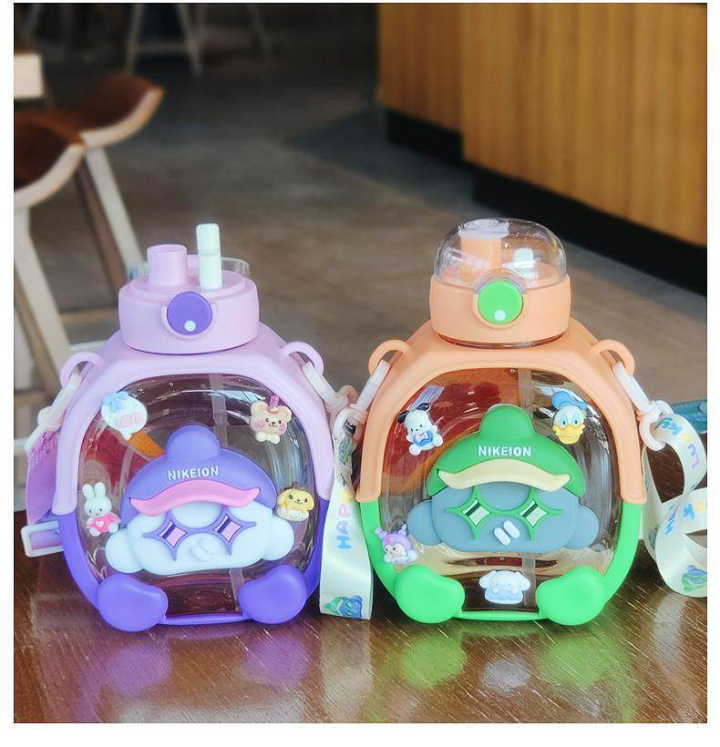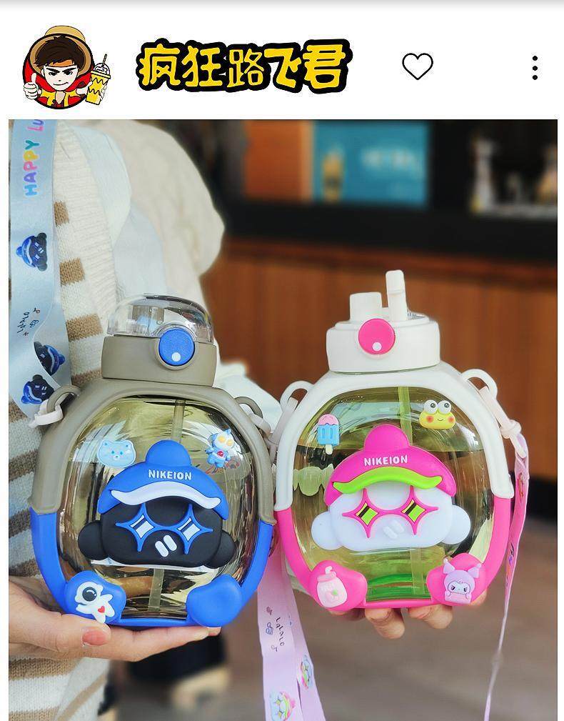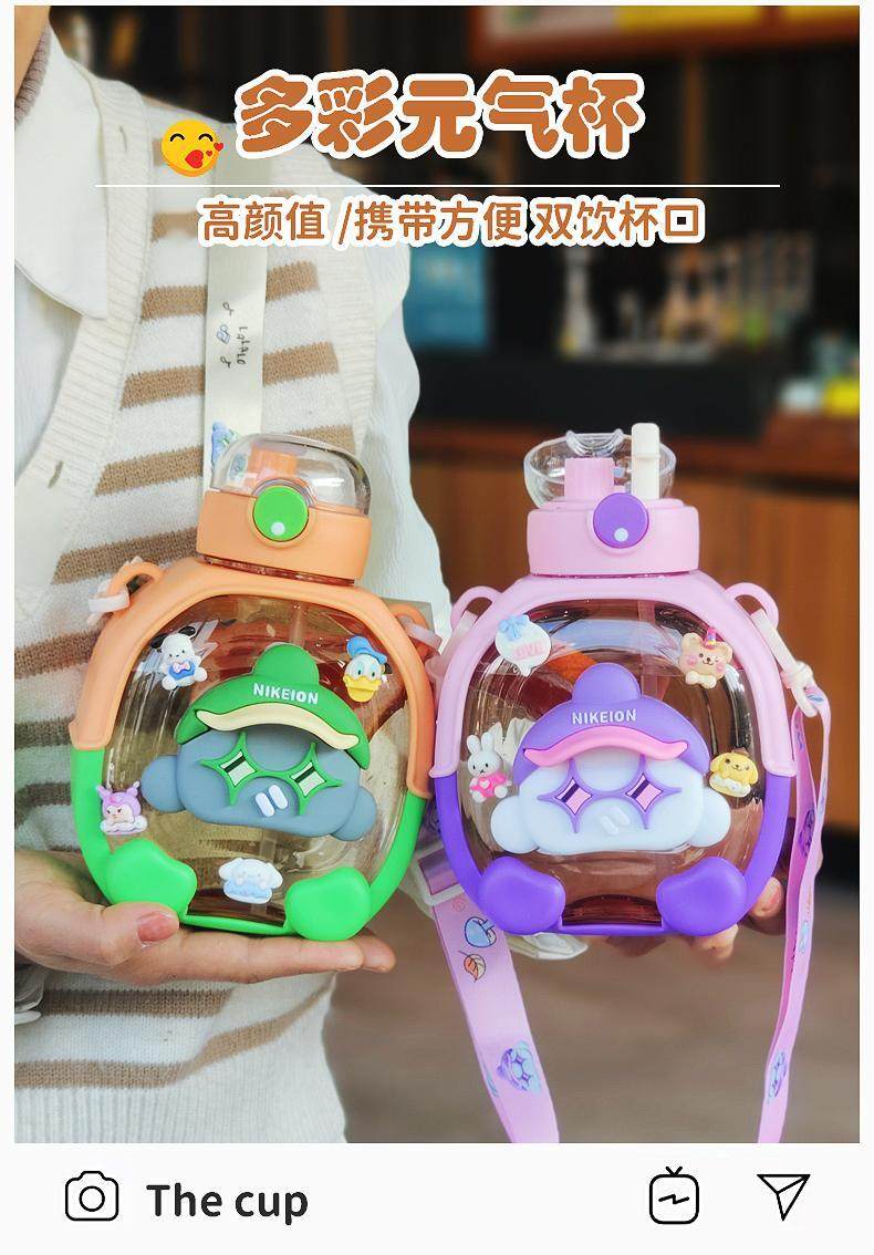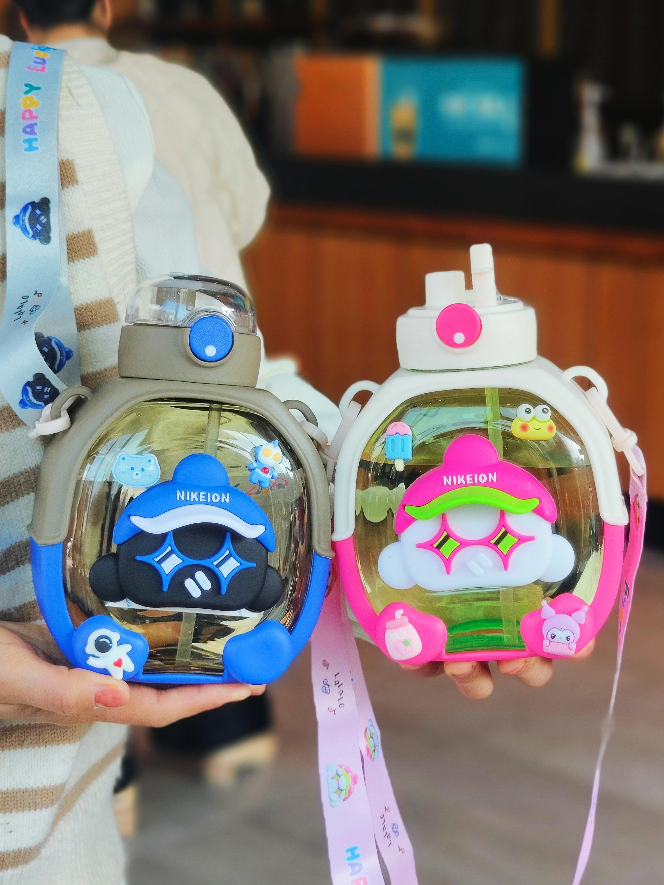 儿童水杯小学生上学专用杯子新款网红吸管杯便携耐摔塑料双饮水壶