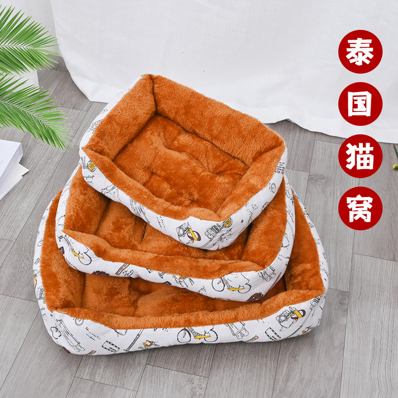 新款猫窝狗窝四季通用棉麻窝柔软羊毛绒泰国猫窝宠物窝保暖羊羔绒
