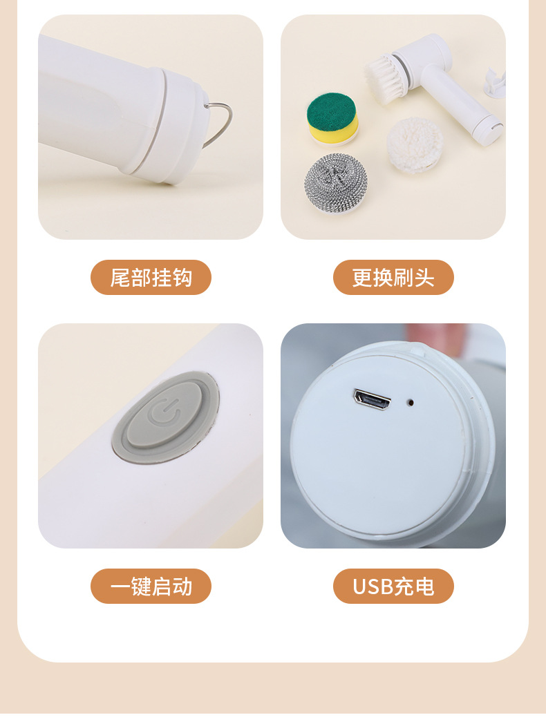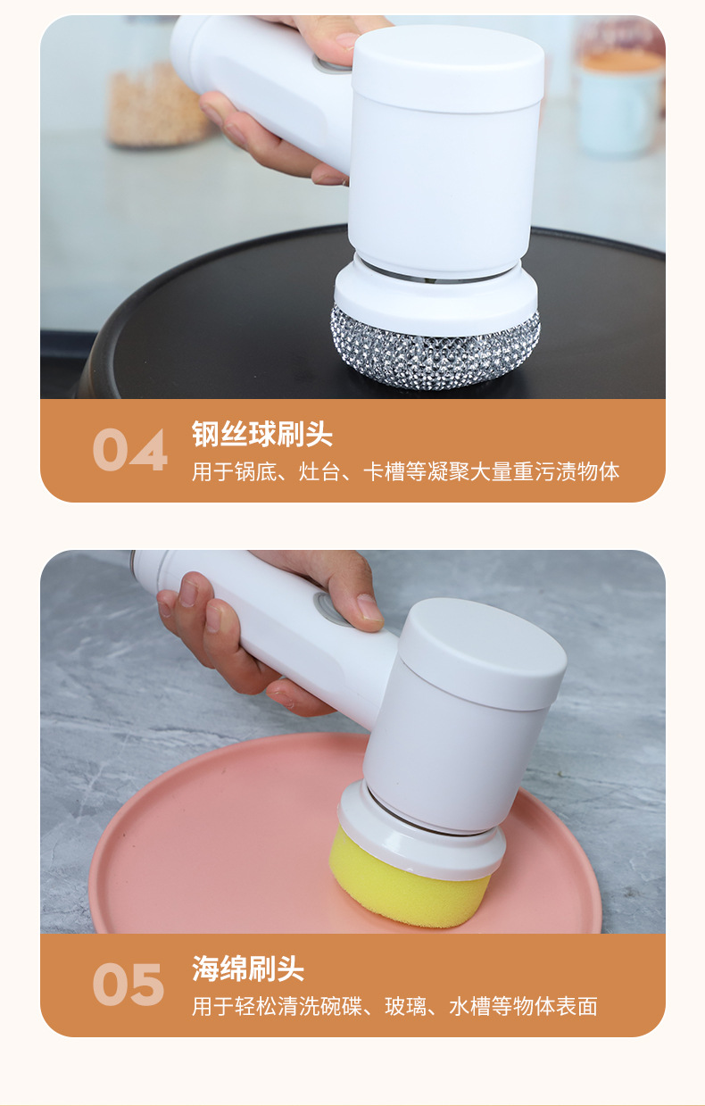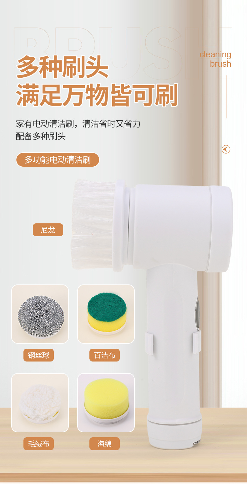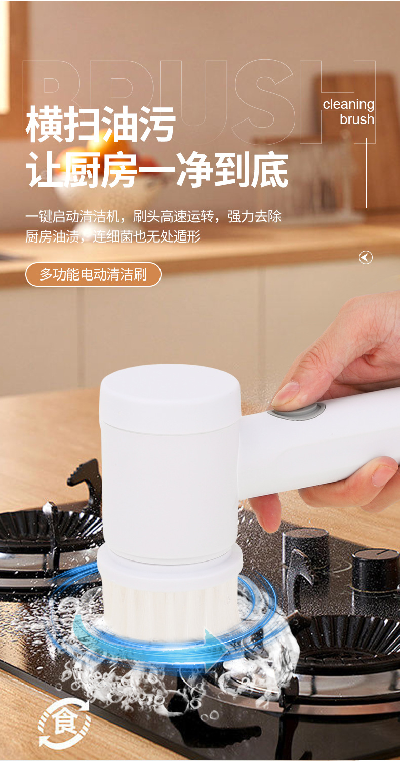 跨境家用多功能手持电动清洁刷洗碗刷厨房6件套网红同款便携替换