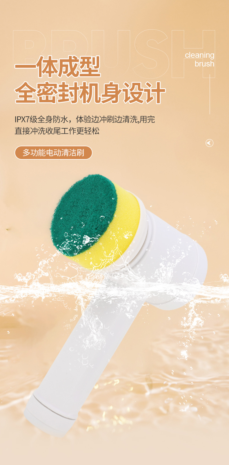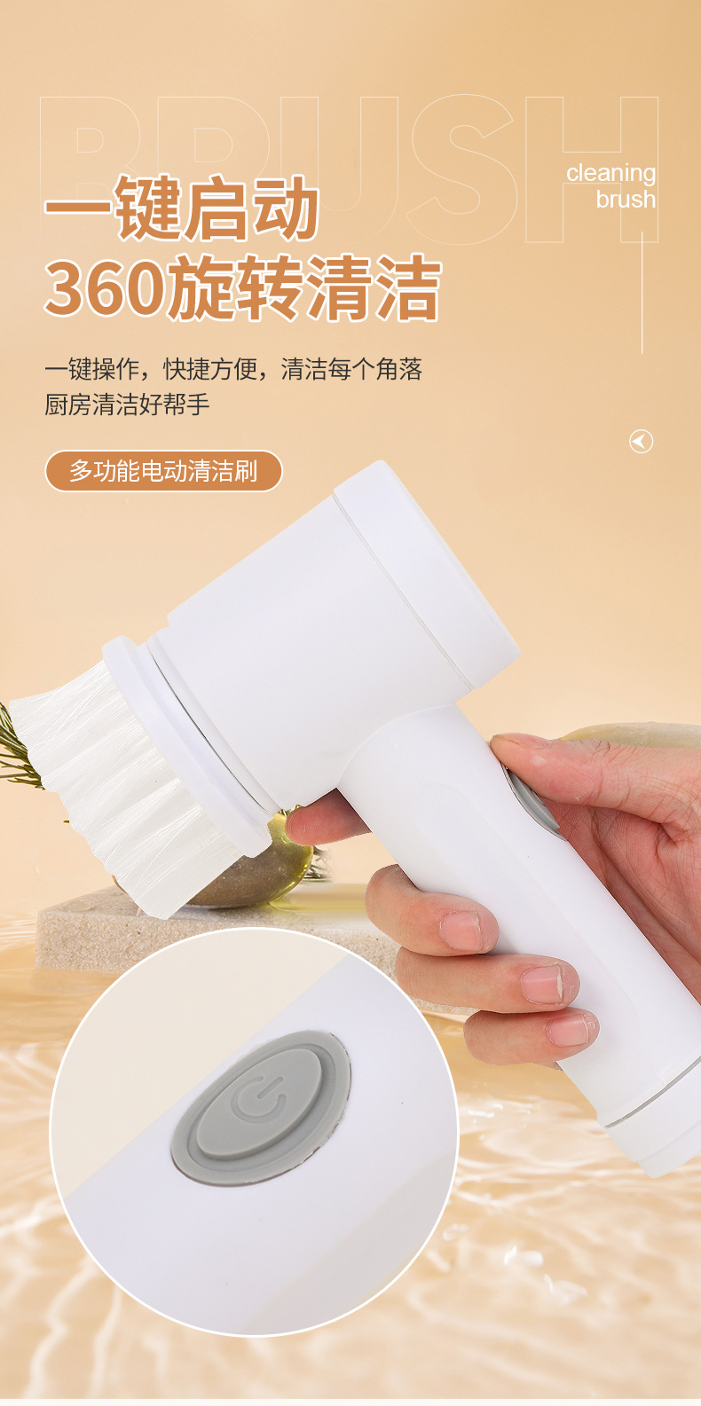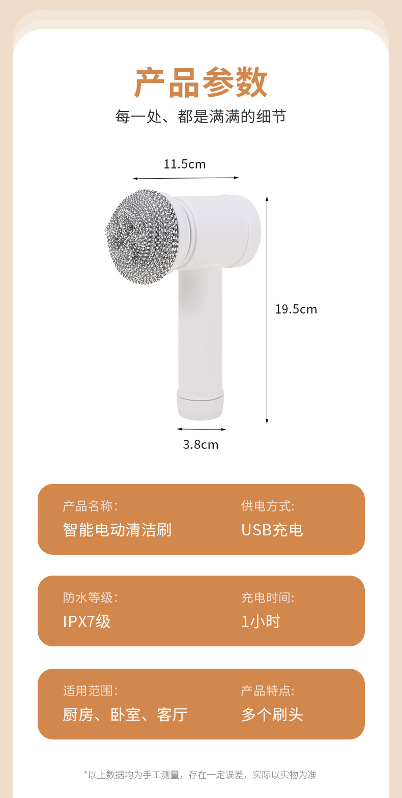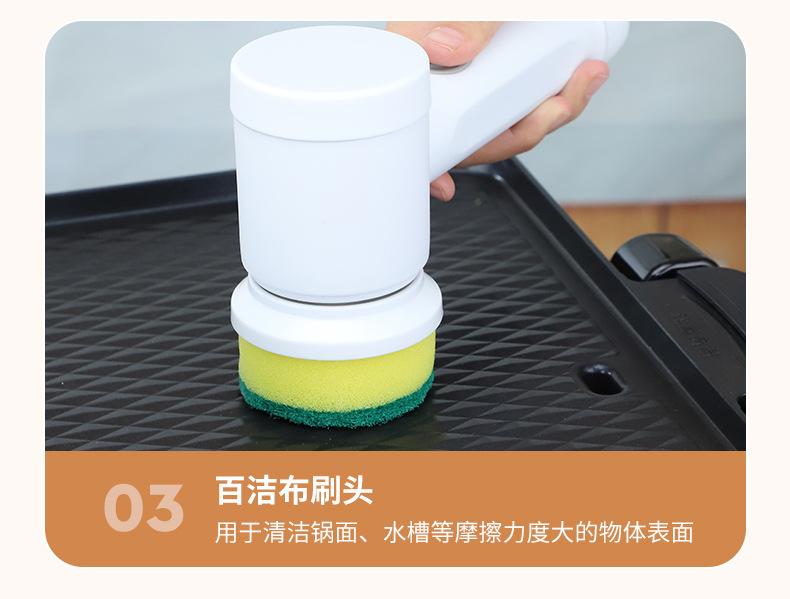 跨境家用多功能手持电动清洁刷洗碗刷厨房6件套网红同款便携替换
