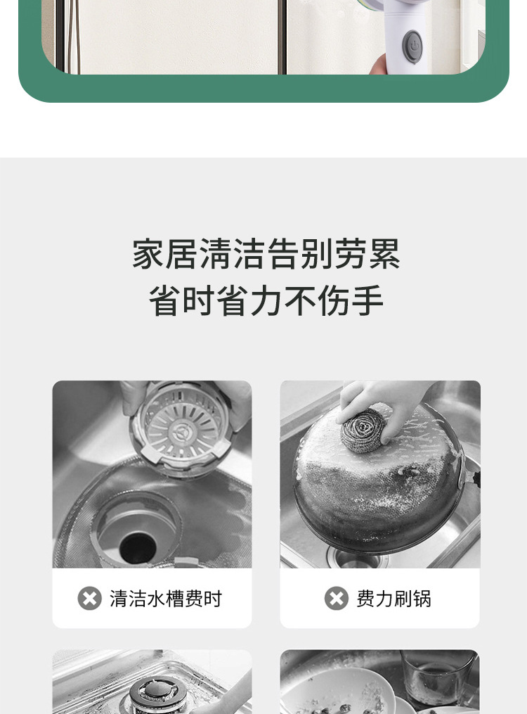 跨境家用多功能手持电动清洁刷洗碗刷厨房家用5件套网红同款