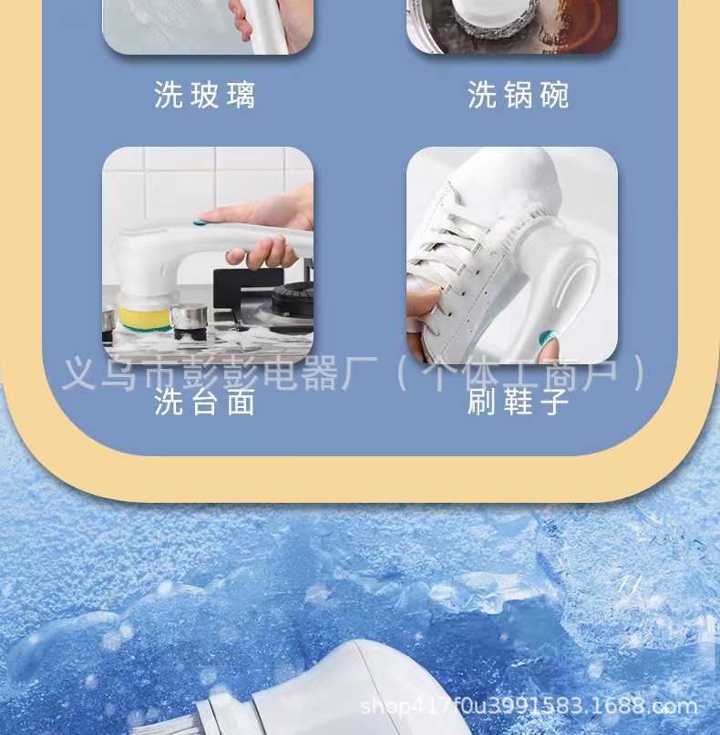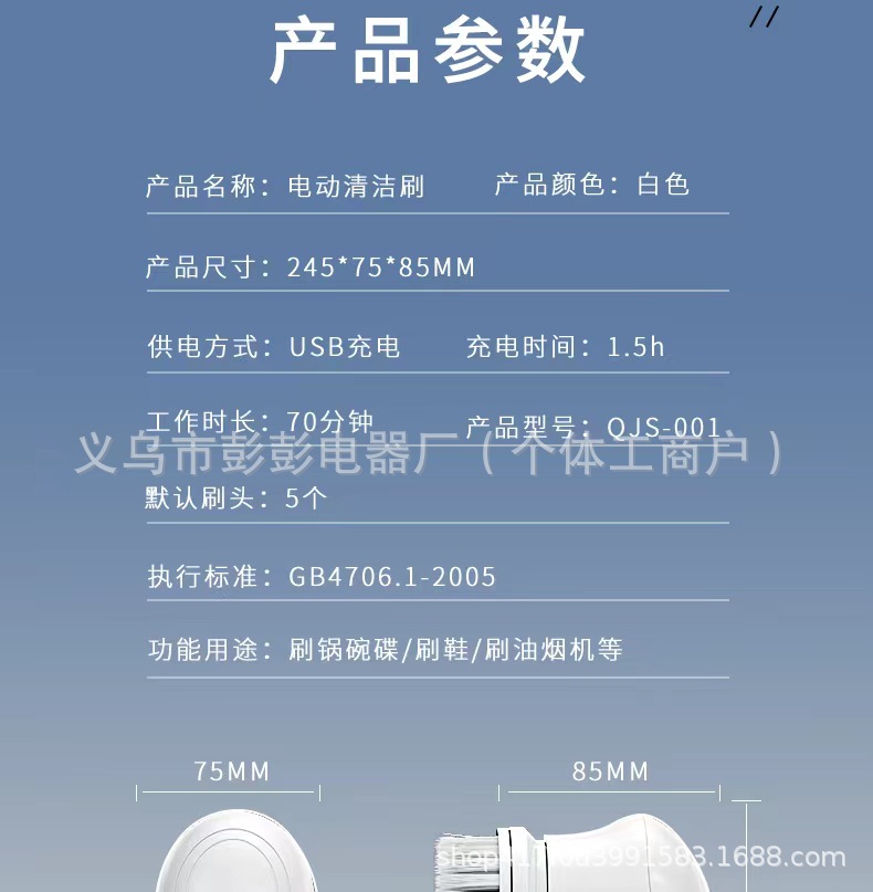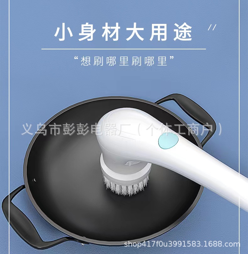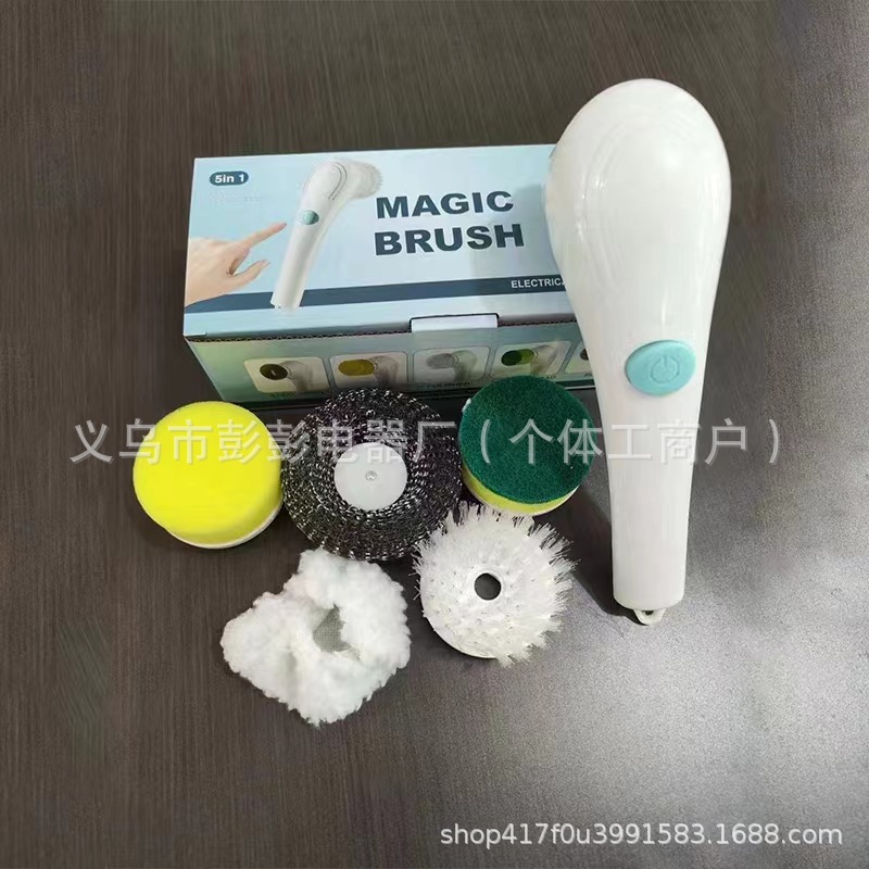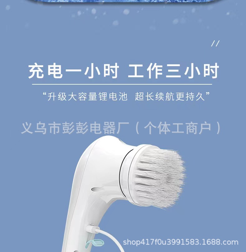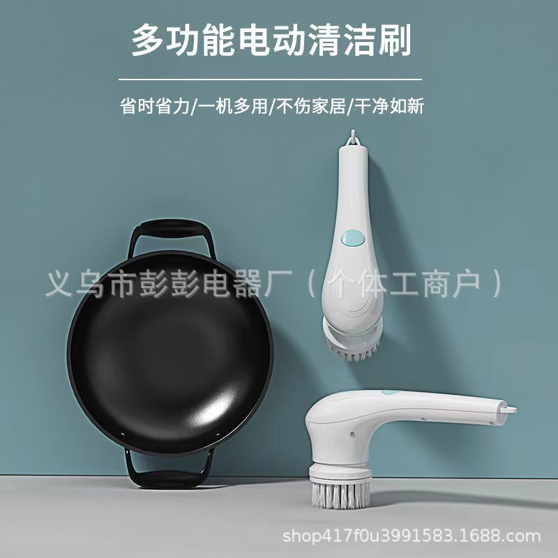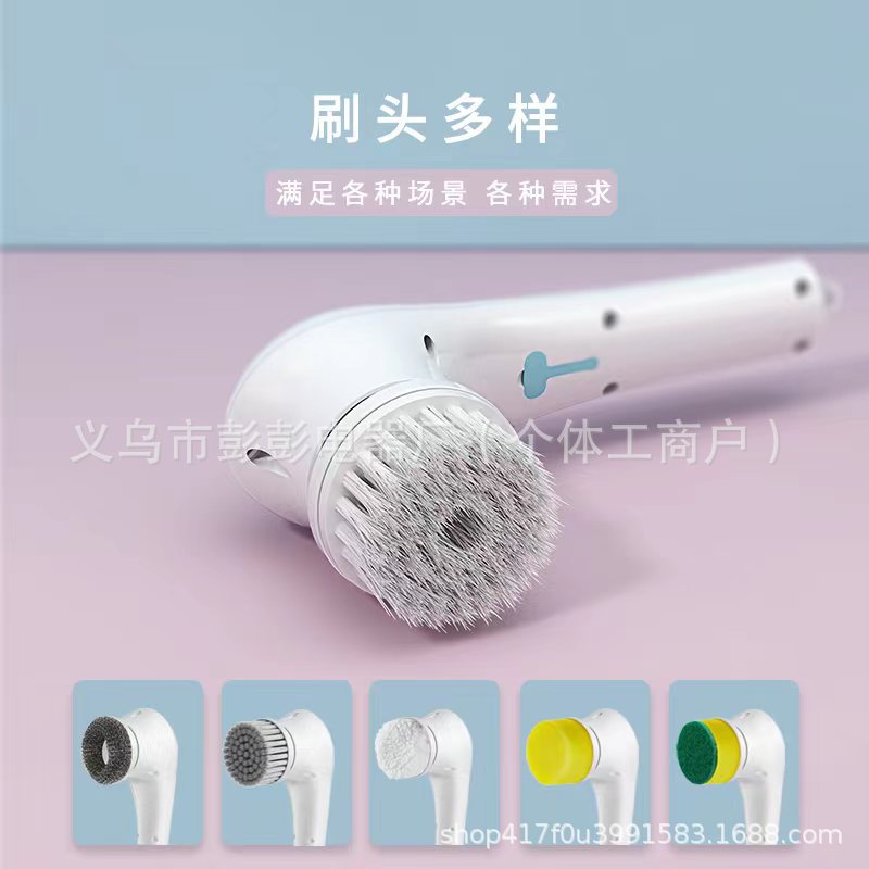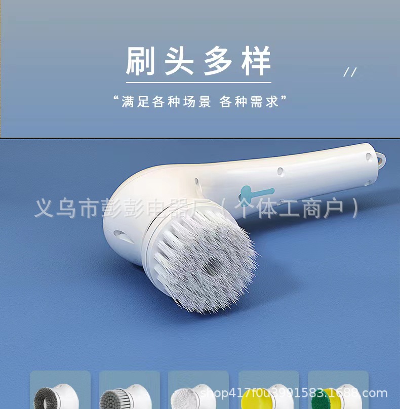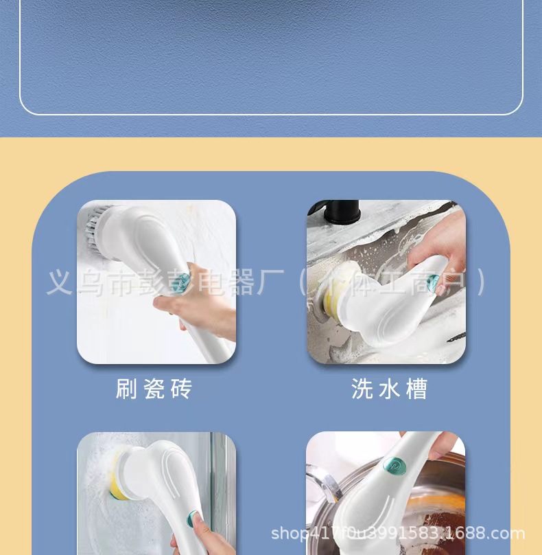 跨境清洁刷外贸电动清洁刷钢丝球五刷头长柄手持清洁厨房洗碗神器
