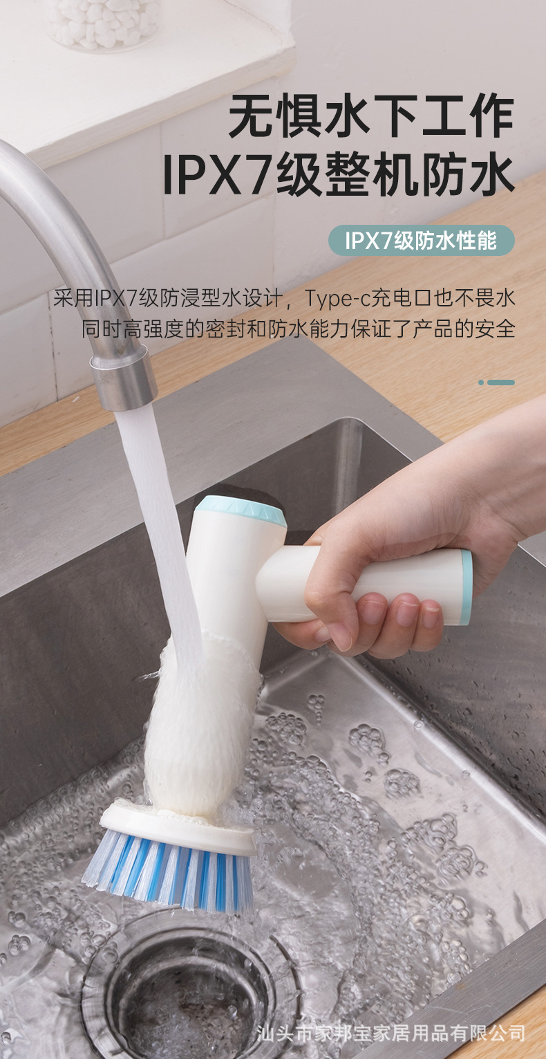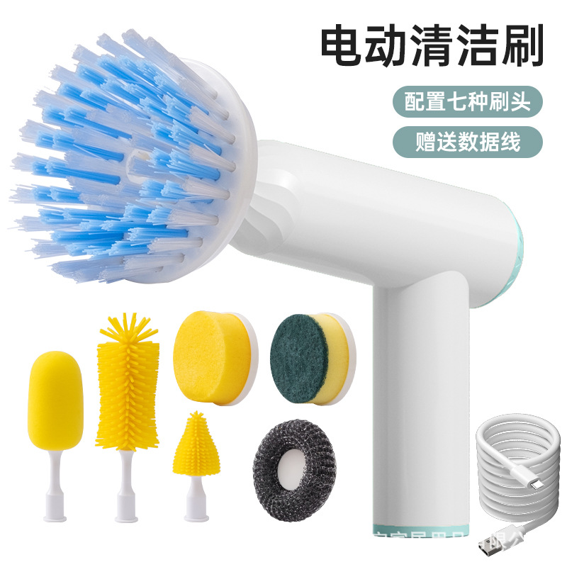 跨境电动清洁刷七合一多功能防水清洁神器家用厨房洗碗刷充电套装