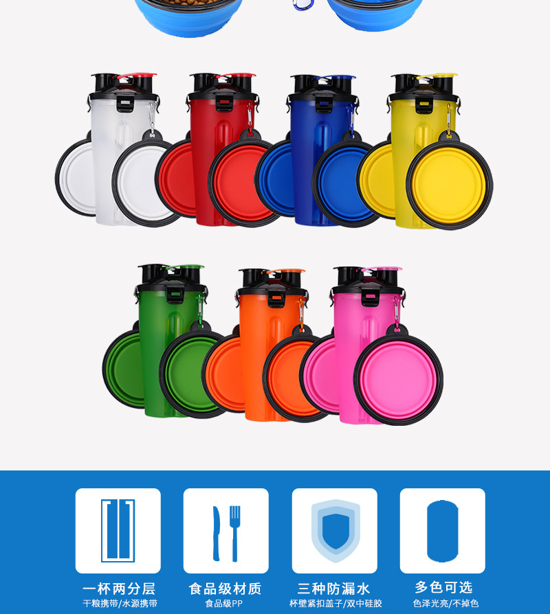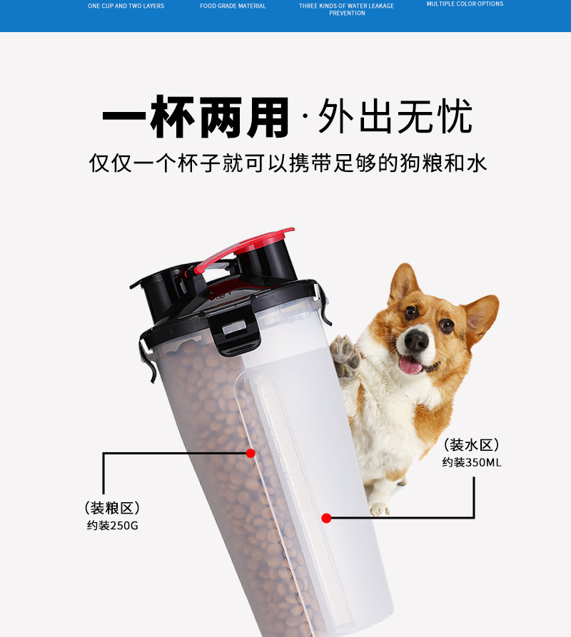 宠物两用水粮杯随行杯便携储粮桶水壶一体折叠碗饮水瓶宠物用品