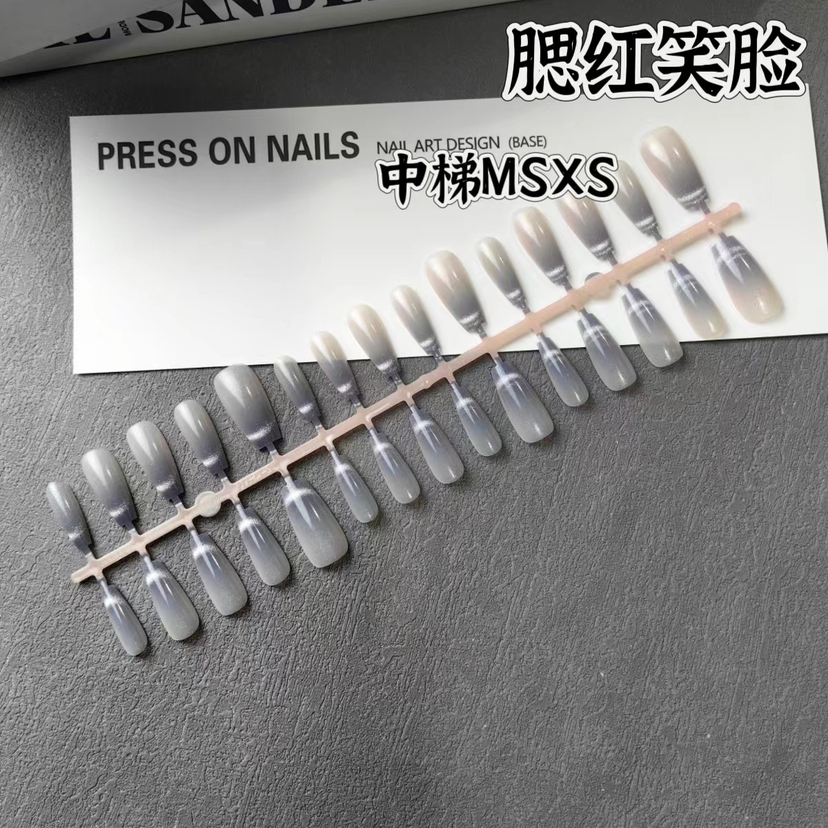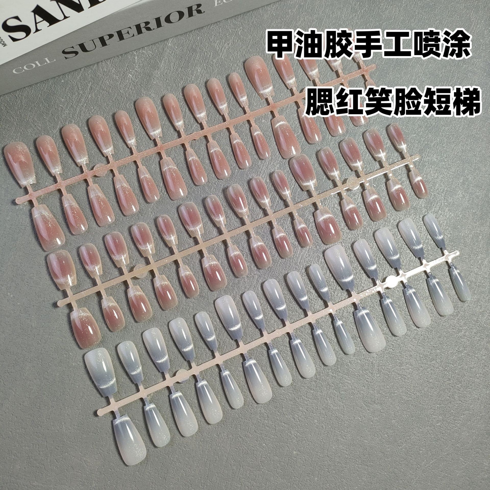 陌上指尖甲片喷涂纯色腮红渐变晕染微笑猫眼半成品成品手工穿戴甲