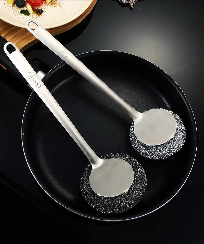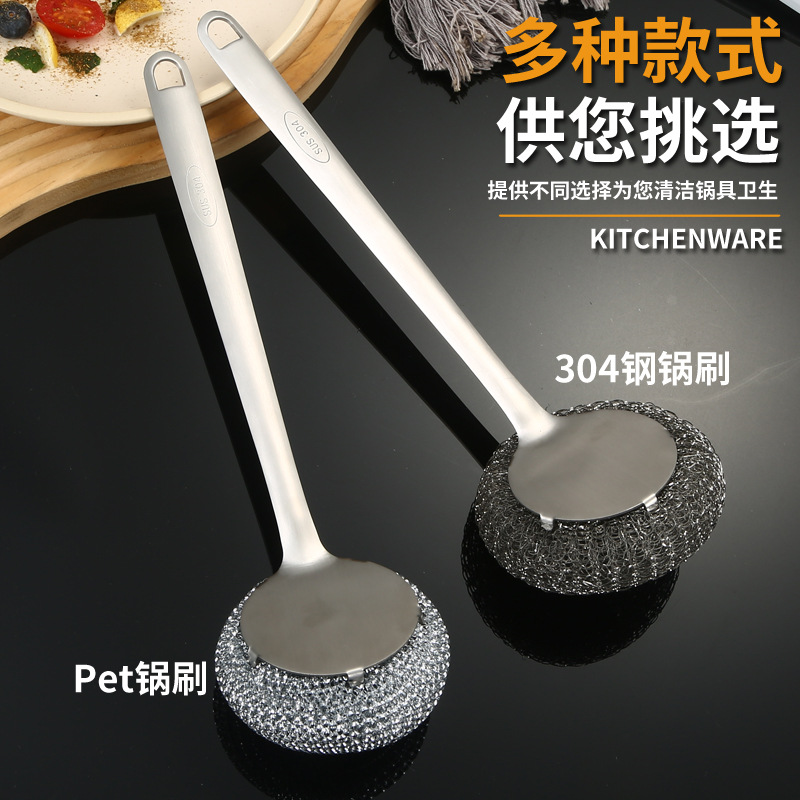 厂家批发304不锈钢锅刷神器家用厨房专用长柄钢丝球刷锅洗锅刷子
