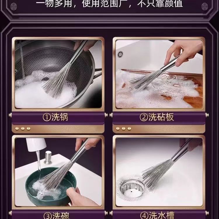 304不锈钢锅刷家用易清洗不藏污长柄刷食堂清洁厨具专用洗锅神器