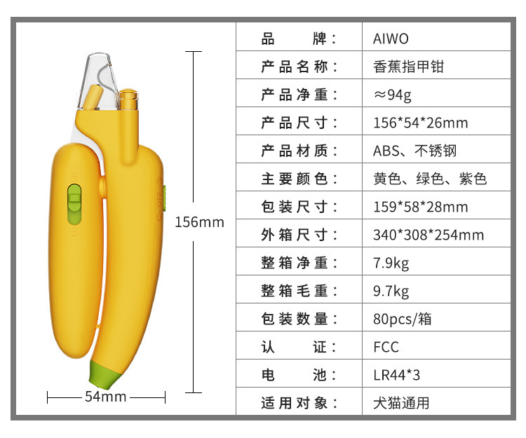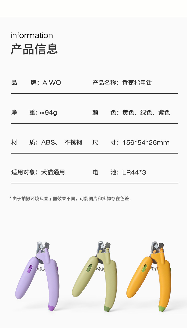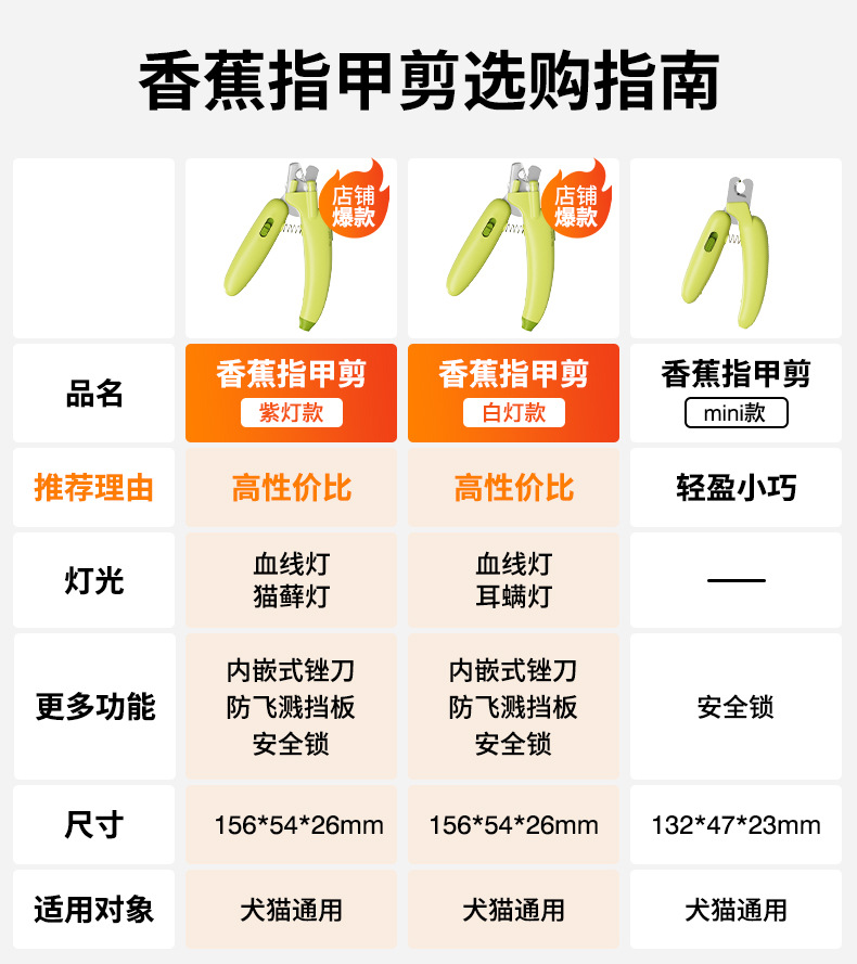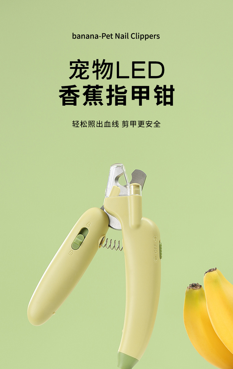 香蕉宠物指甲剪猫咪指甲刀狗狗指甲钳带灯防飞溅磨甲器猫狗用品