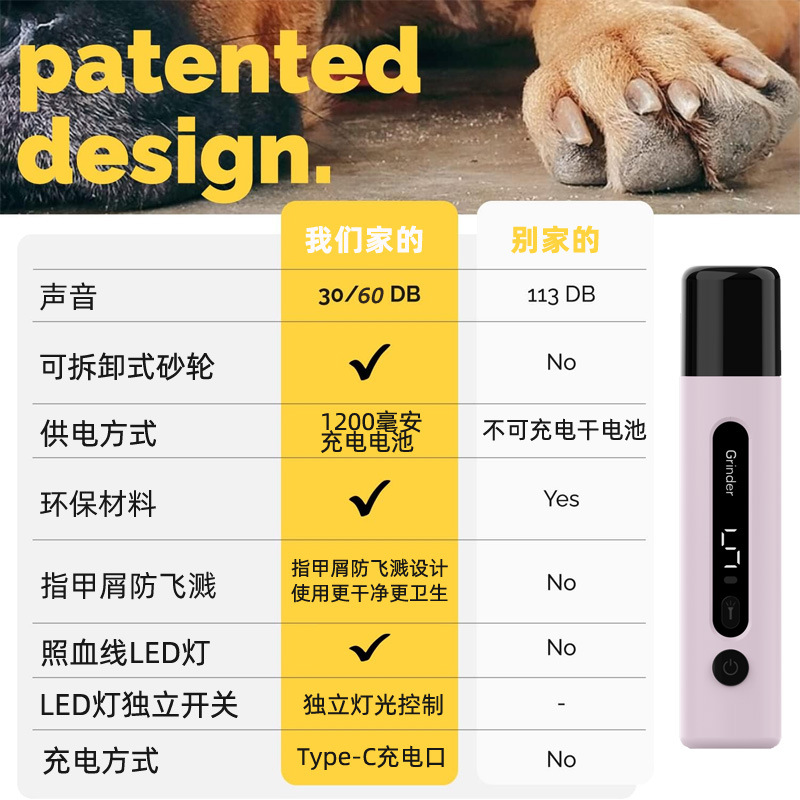 便携充电式宠物磨甲器指甲剪LED带灯套装金刚砂磨头狗狗猫咪专用