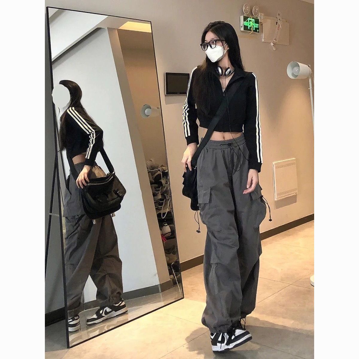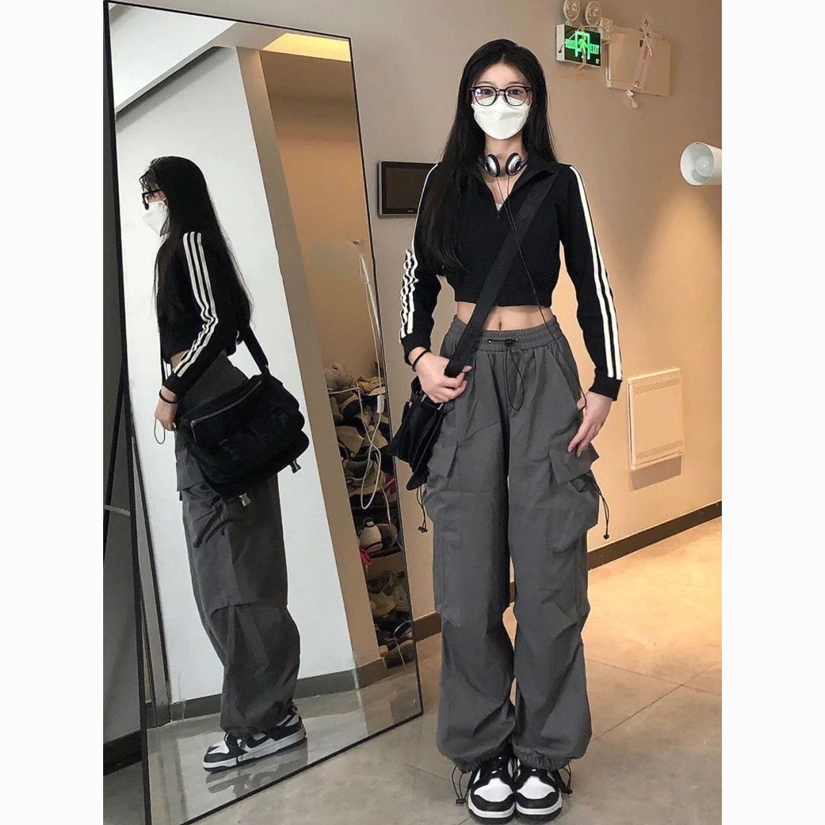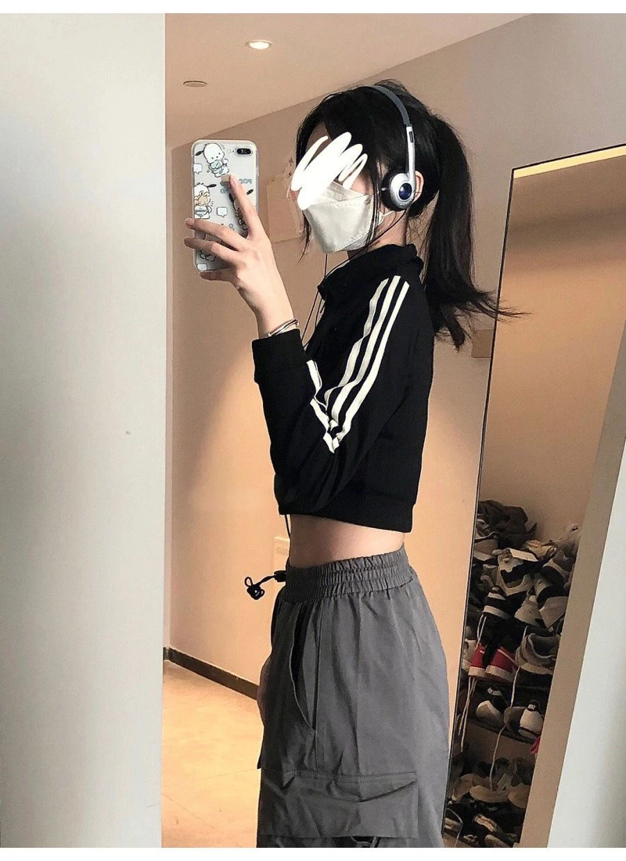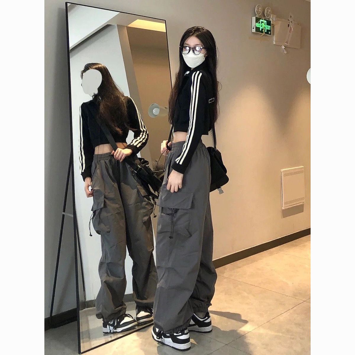 美式hiphop工装裤女夏薄款高腰束脚可调节2023新款休闲直筒运动裤