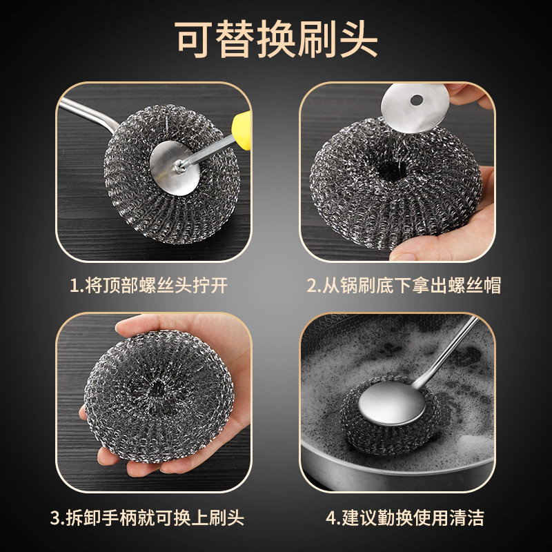 304不锈钢长柄锅刷洗碗清洁刷子厨房家用大号钢丝球刷锅去污神器