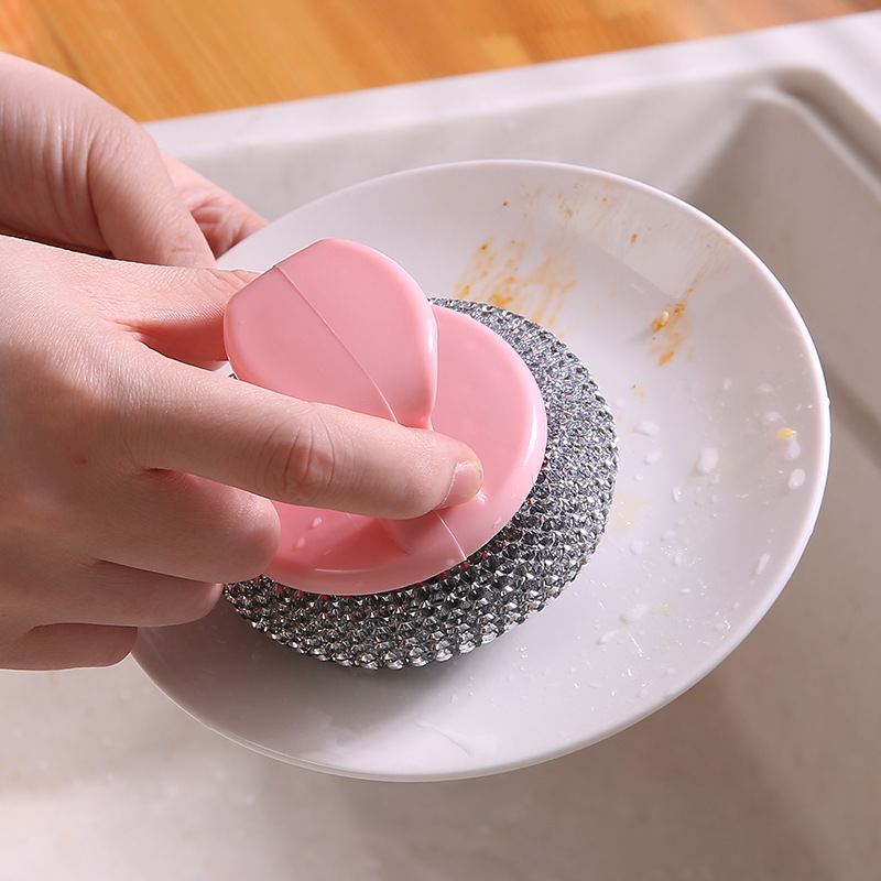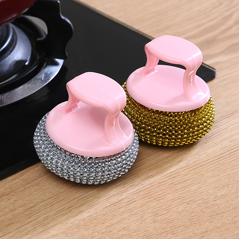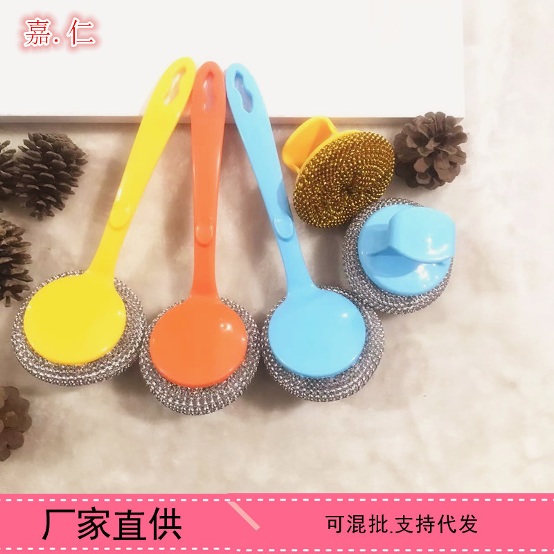 厨房带手柄锅刷批发可拆手柄洗锅刷纤维钢丝球彩色纳米清洁球锅刷
