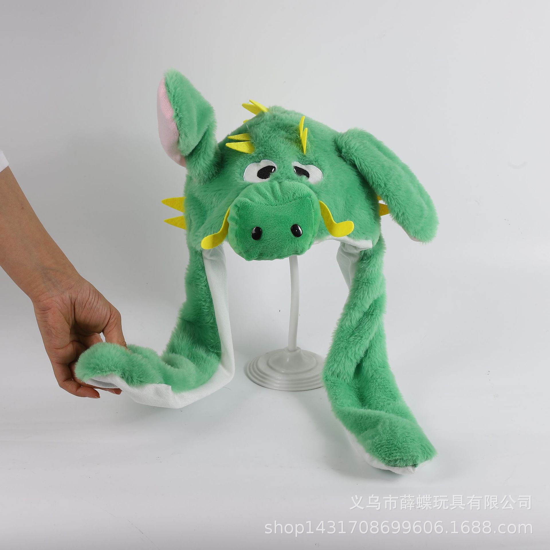 新款龙年网红发光帽一捏耳朵会动龙帽卡通毛绒保暖兔帽可爱气囊帽