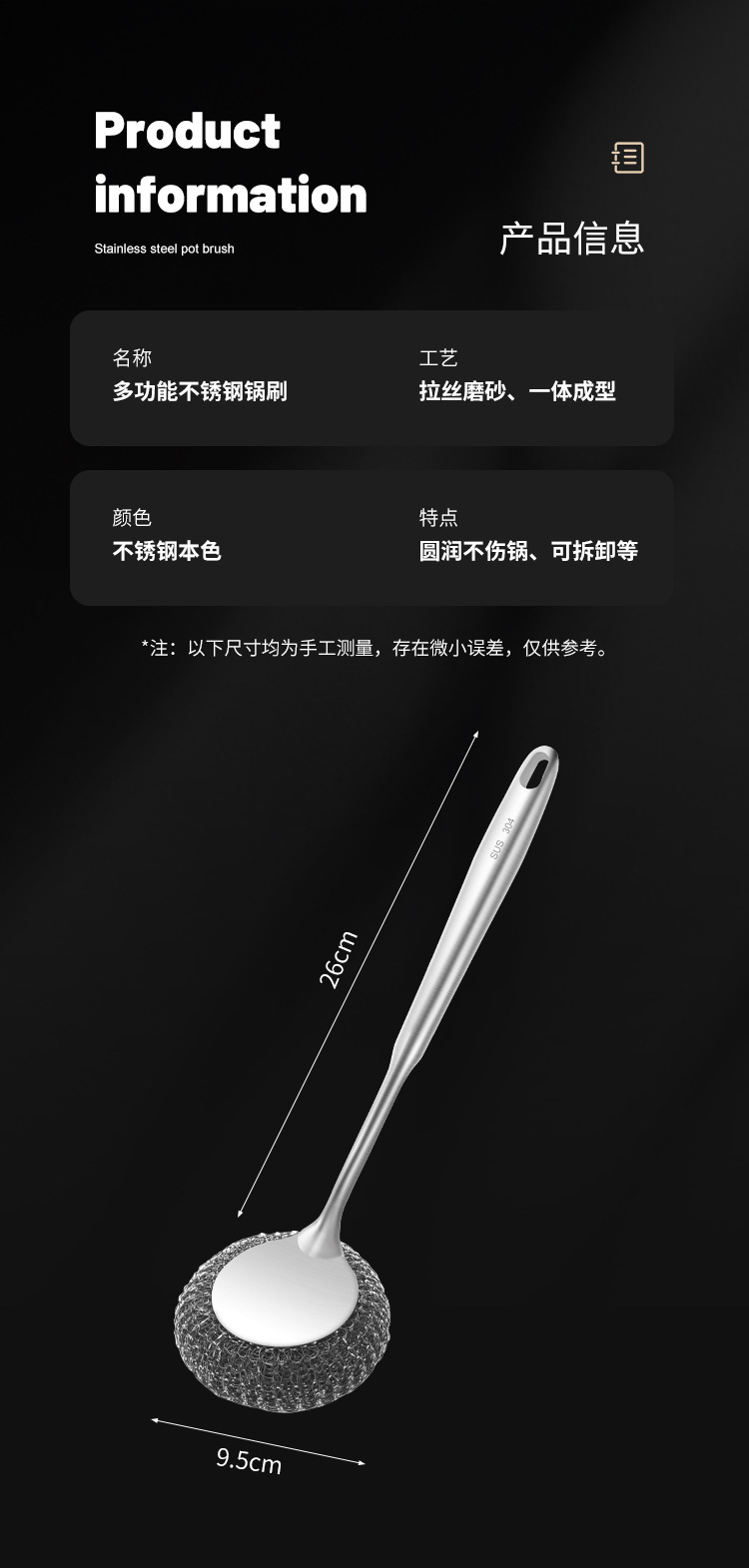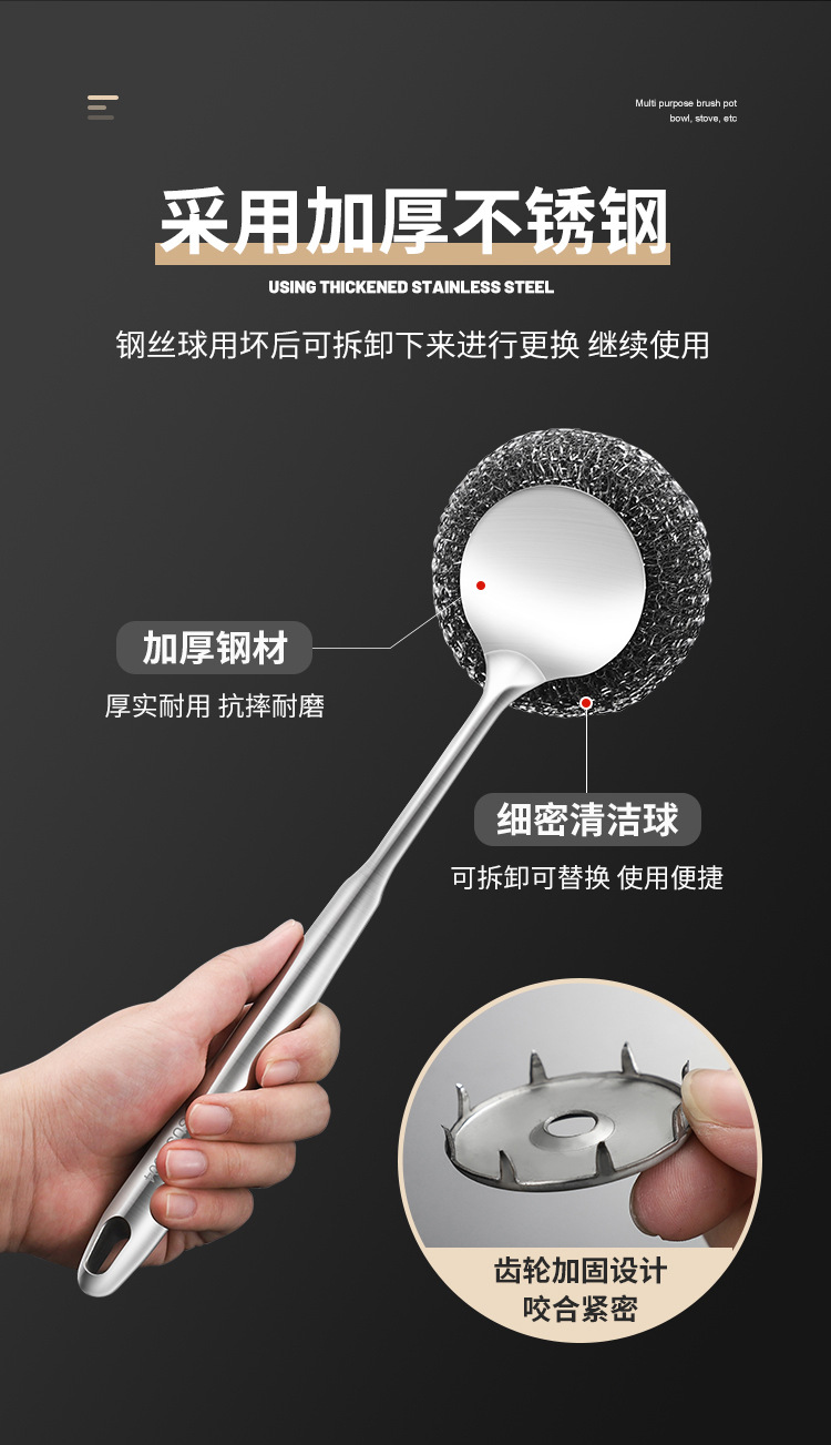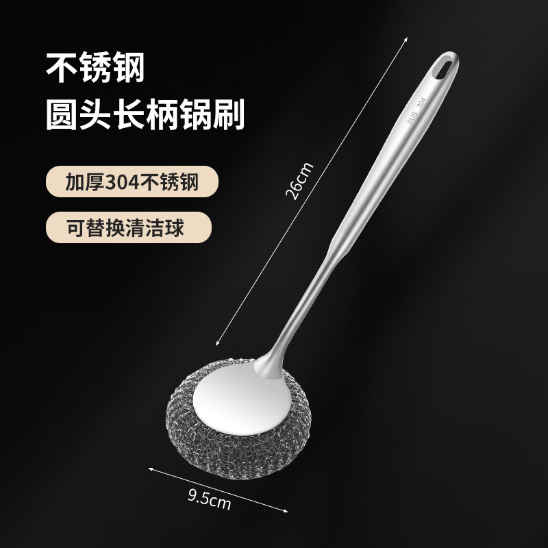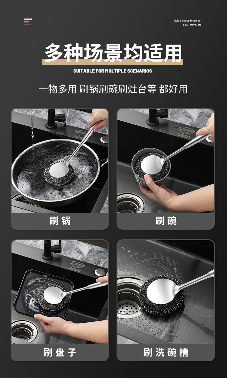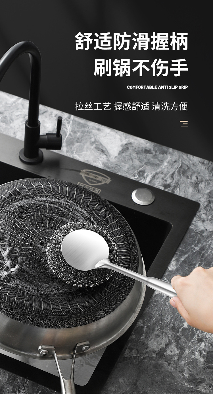 德国304不锈钢锅刷锅神器厨房专用长柄锅刷清洁刷洗碗洗锅钢丝球