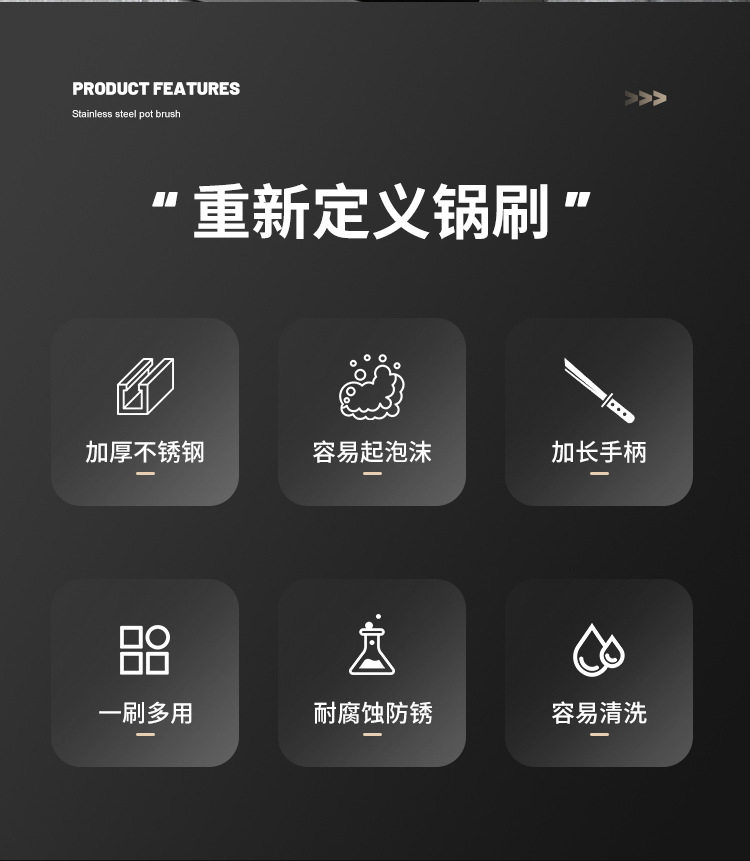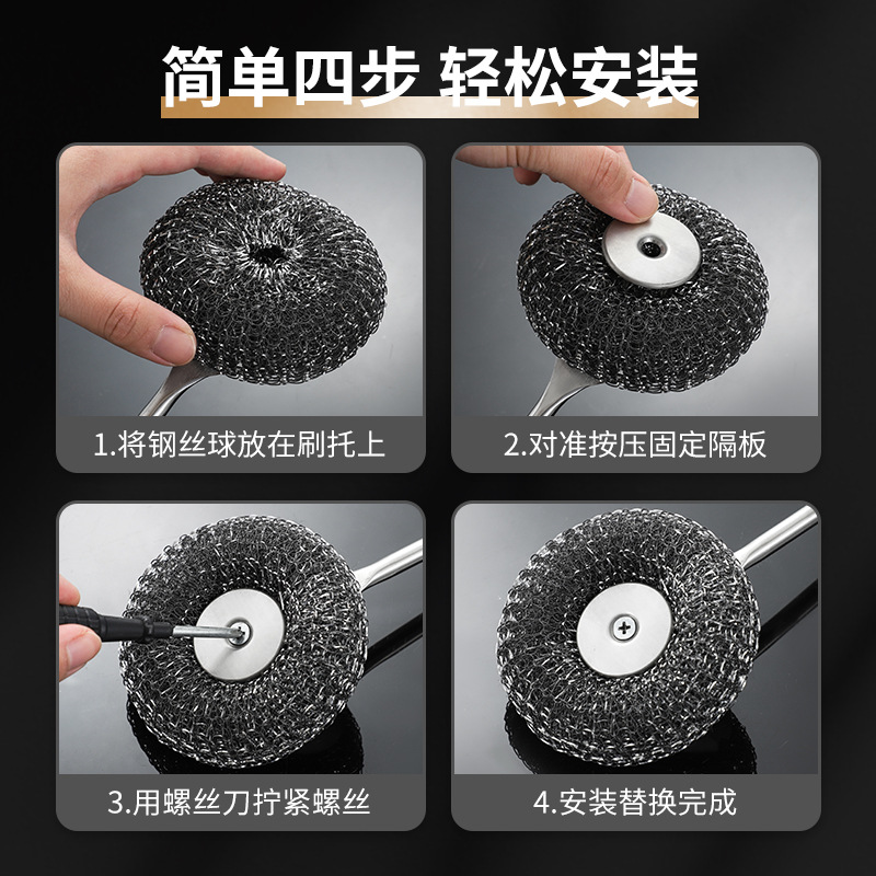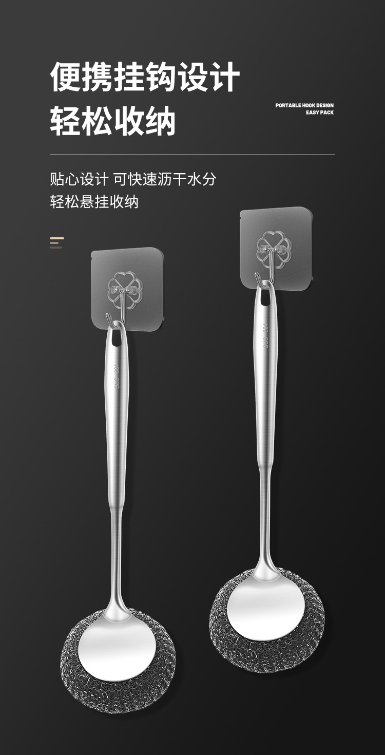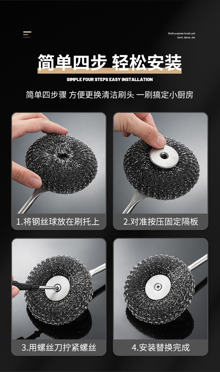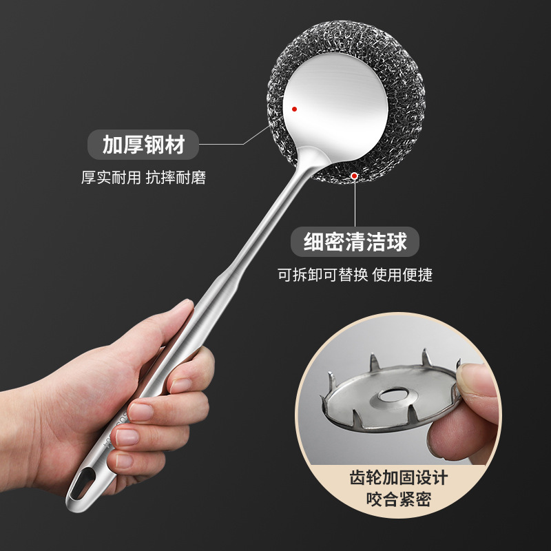 德国304不锈钢锅刷锅神器厨房专用长柄锅刷清洁刷洗碗洗锅钢丝球