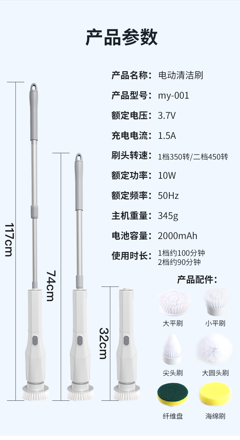 电动清洁刷加长杆防水多功能刷家用浴室鱼缸瓷砖地板清洁刷子神器