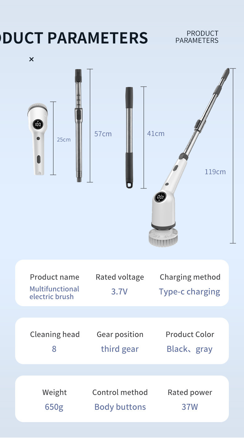跨境新品多功能手持无线电动刷液晶数显电动清洁刷九合一电动拖把