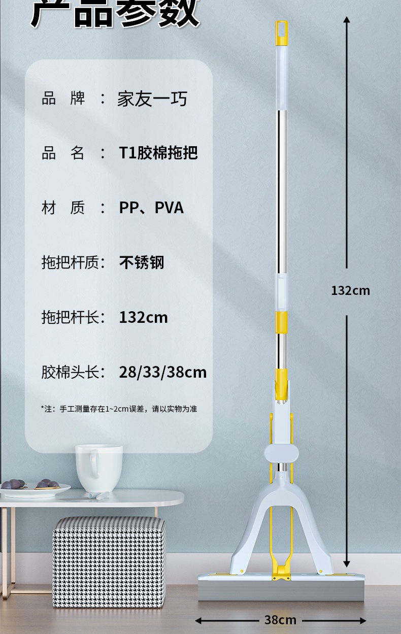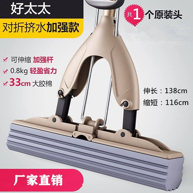 现货海绵拖把家用免手洗对折式吸水胶棉拖把折叠大地拖把布头批发