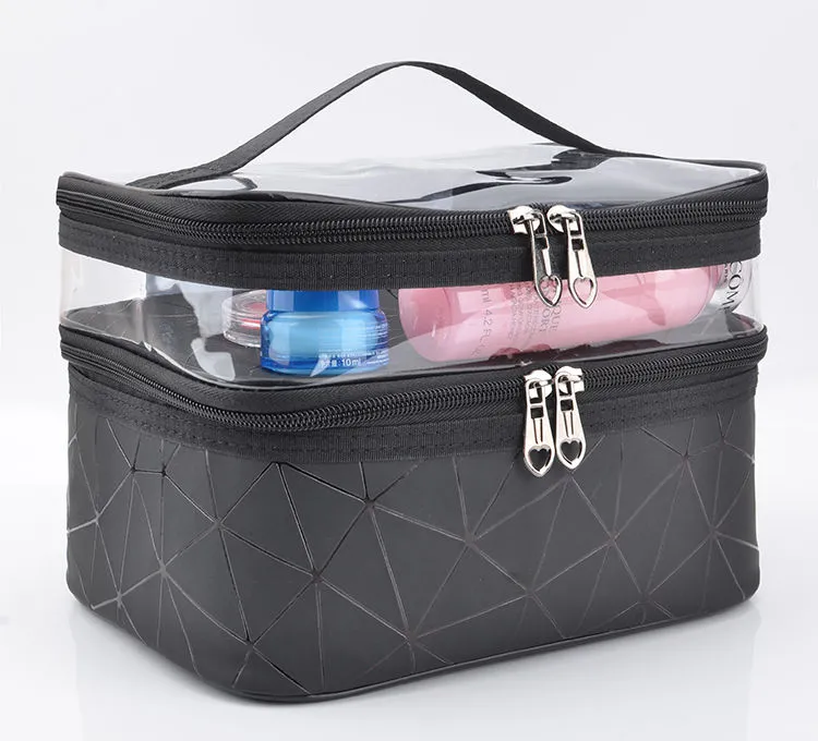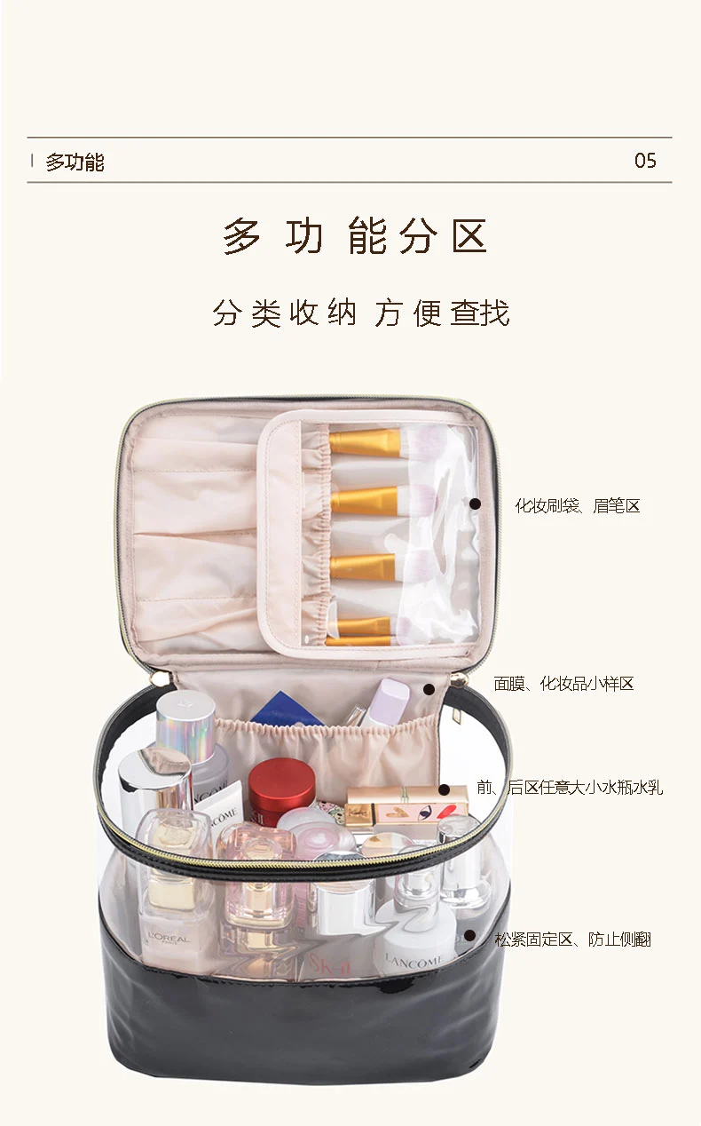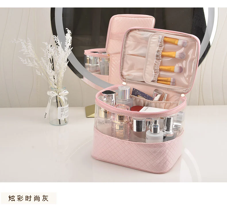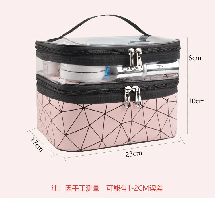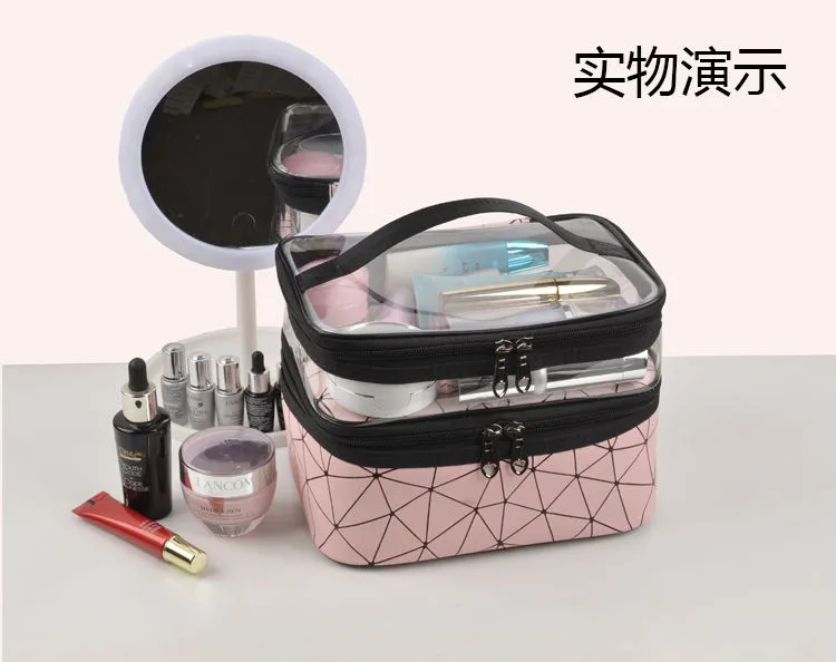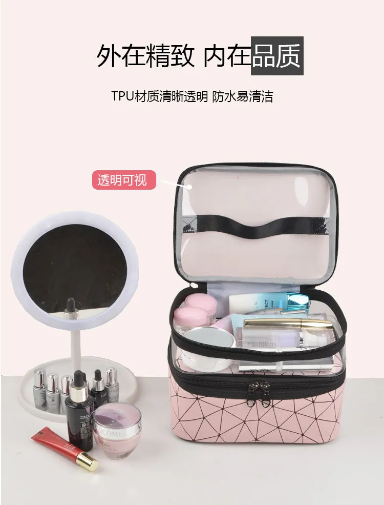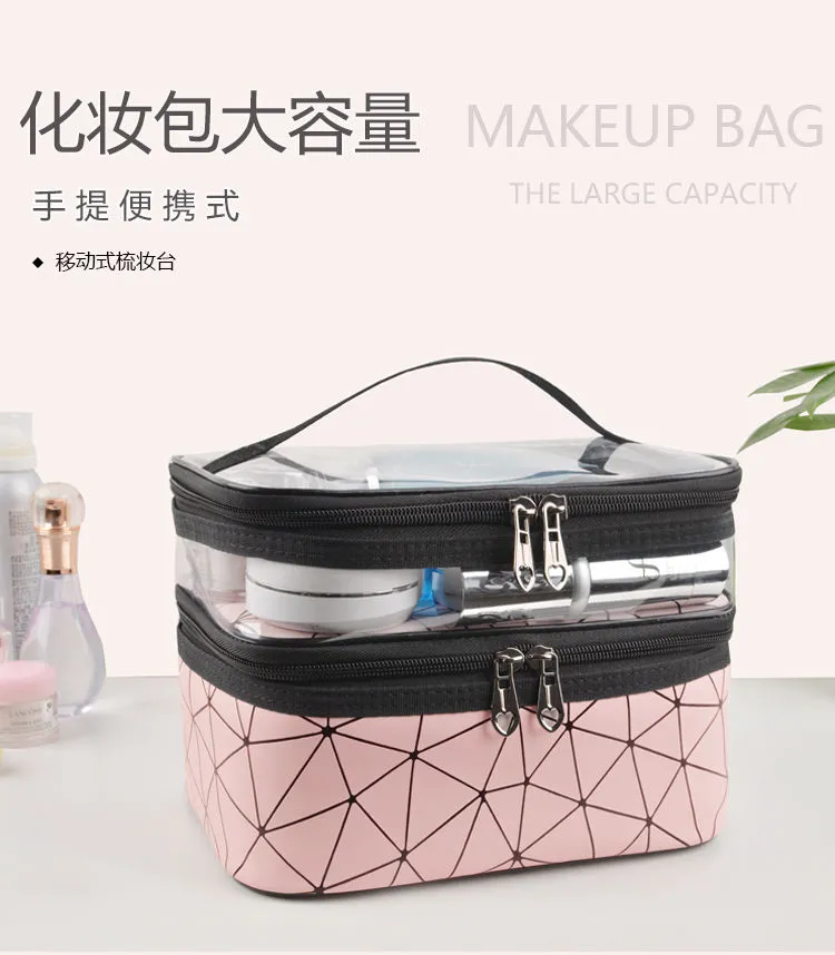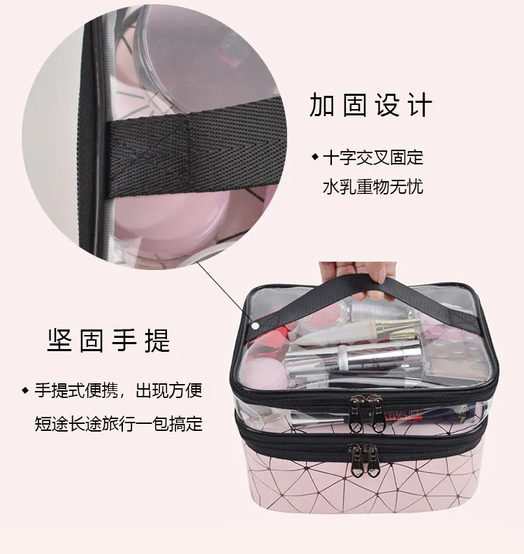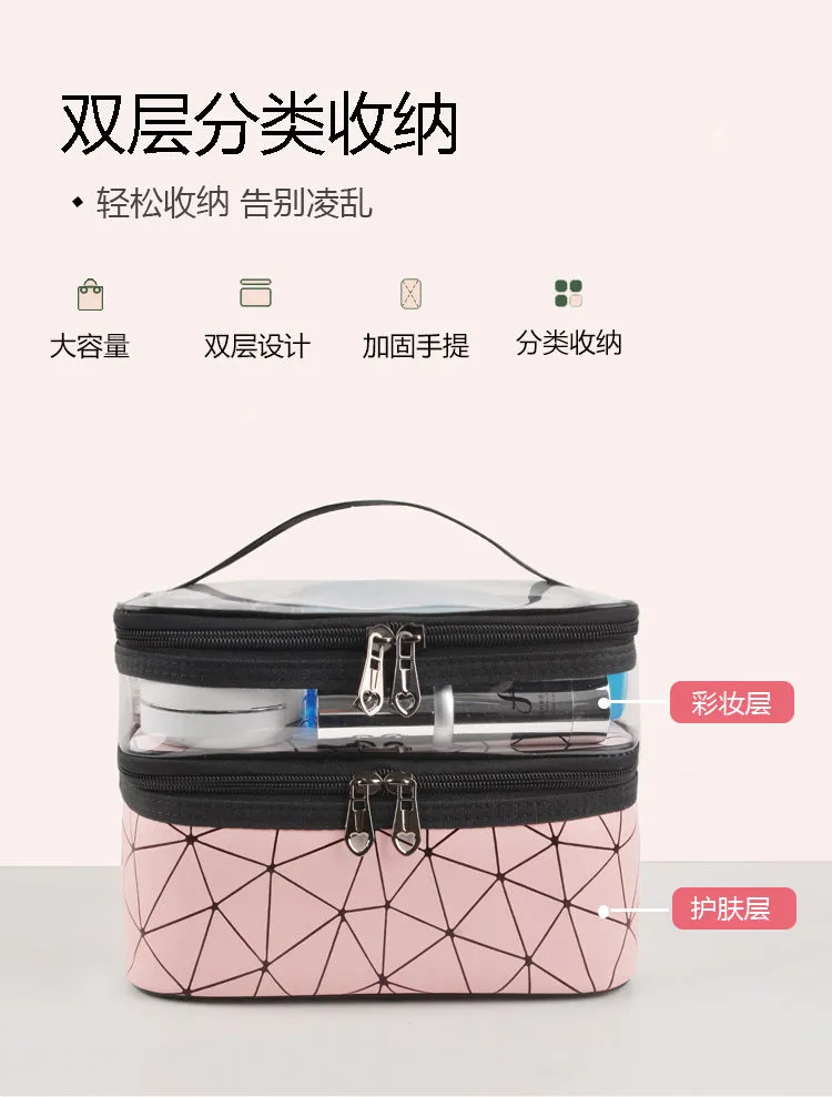 两层多功能化妆包大容量便携手提旅行包防水透明洗簌包化妆收纳包