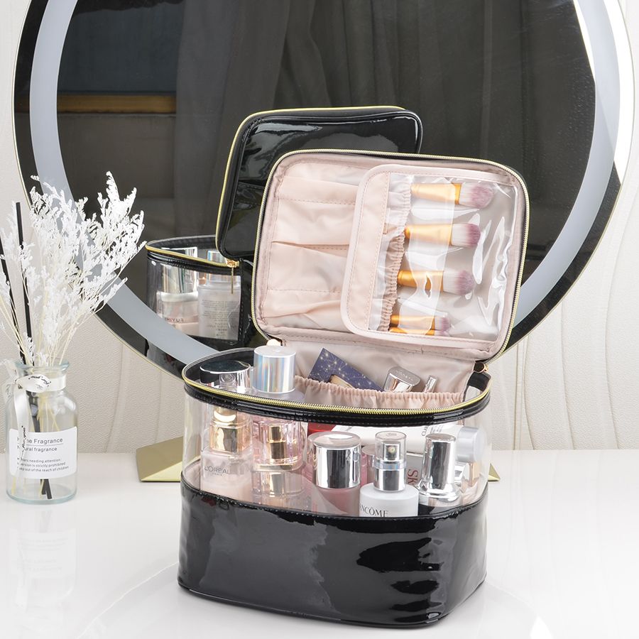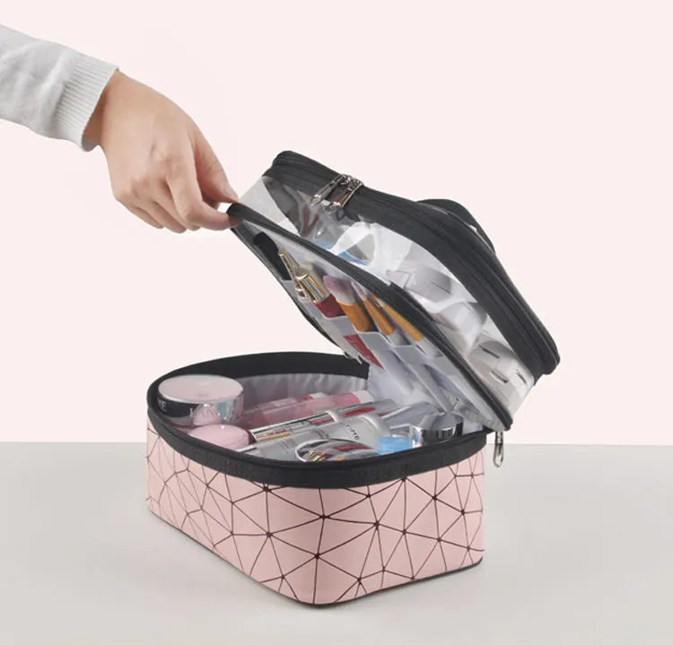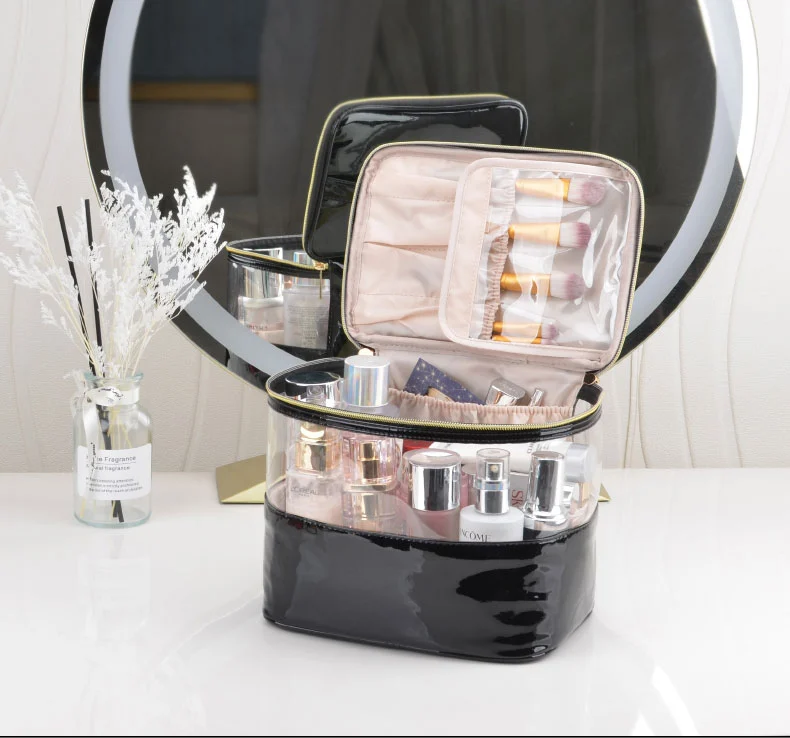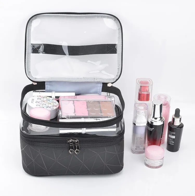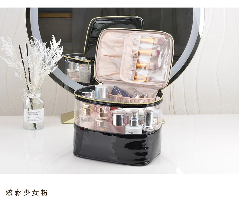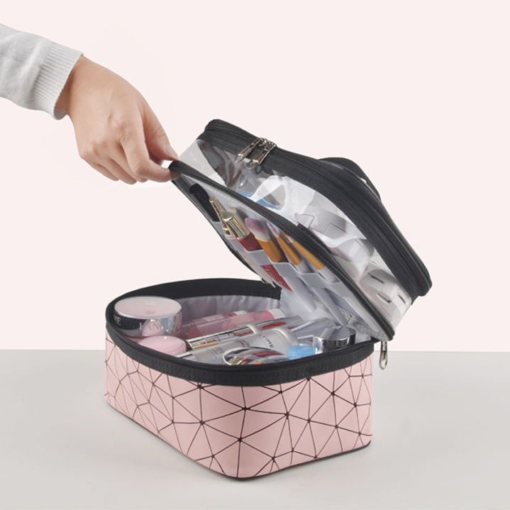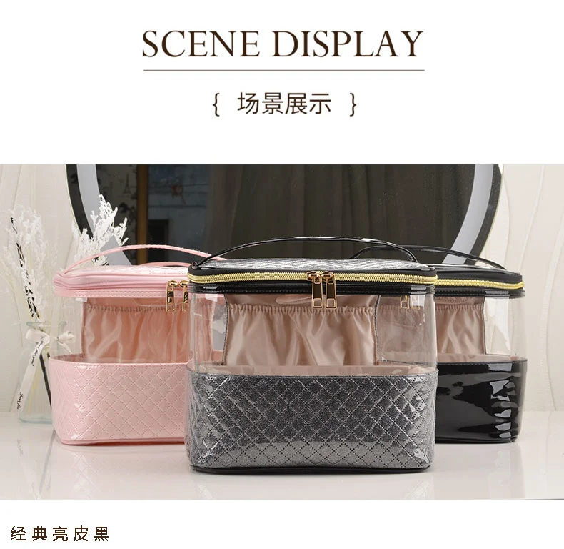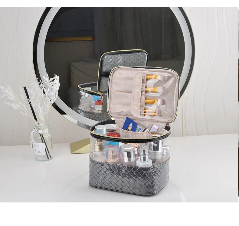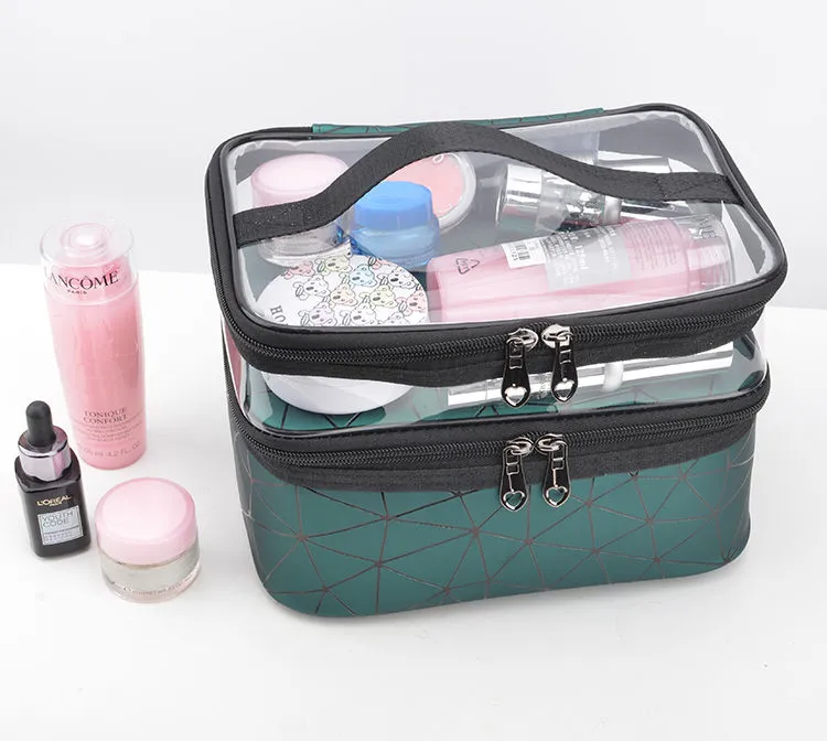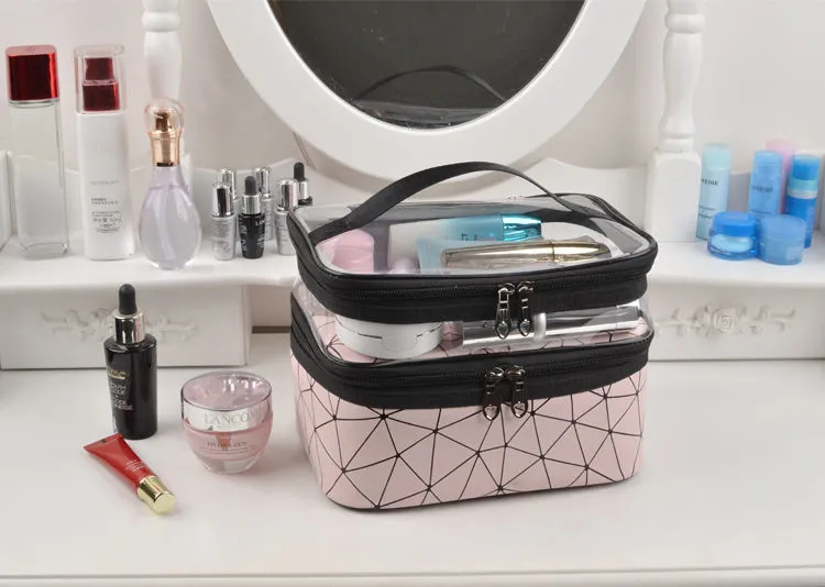 两层多功能化妆包大容量便携手提旅行包防水透明洗簌包化妆收纳包