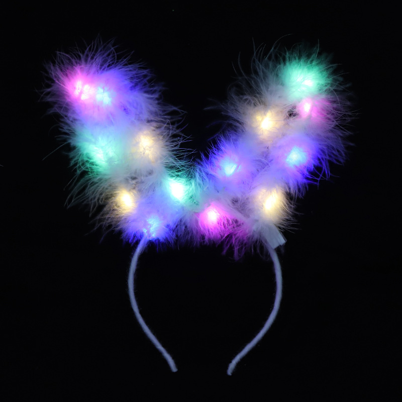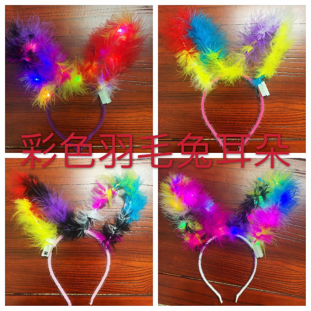 新款加长14灯发光羽毛兔耳朵14灯金丝兔耳朵地摊夜市公园爆款批发