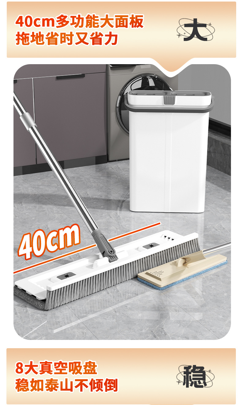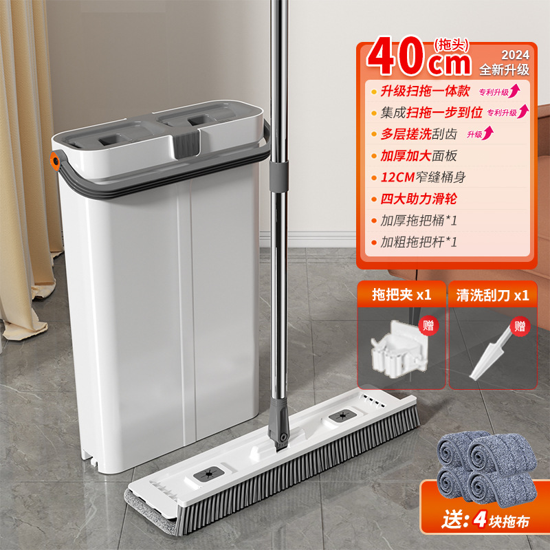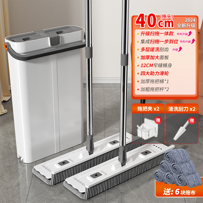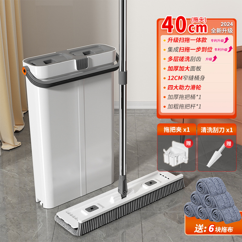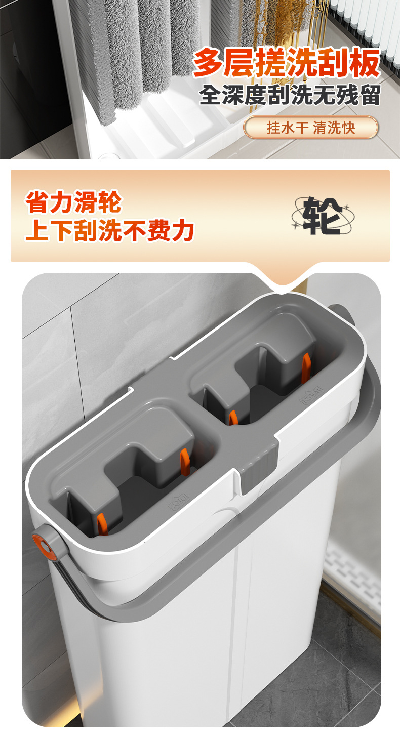免手洗平板拖把家用刮扫一体墩布桶一拖净网红懒人拖地夹缝刮刮乐