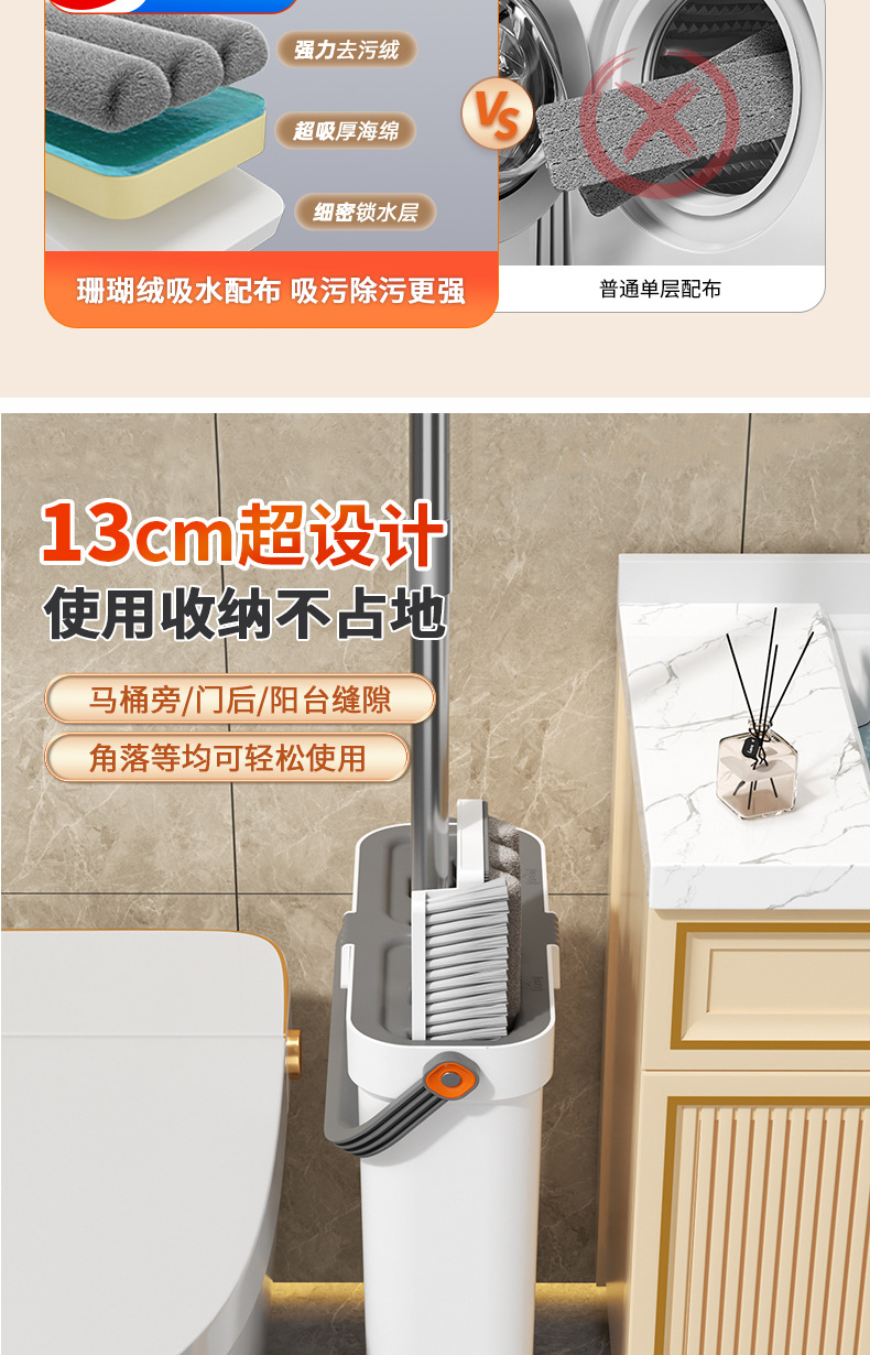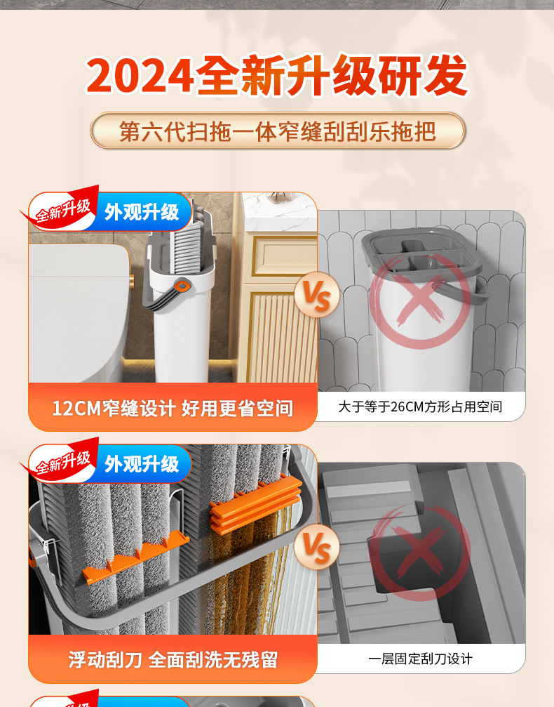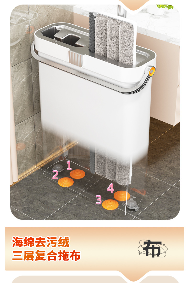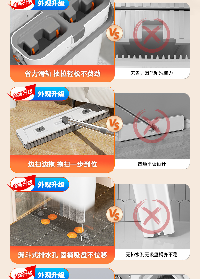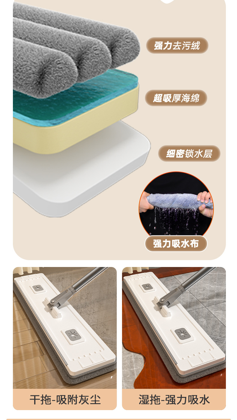 免手洗平板拖把家用刮扫一体墩布桶一拖净网红懒人拖地夹缝刮刮乐