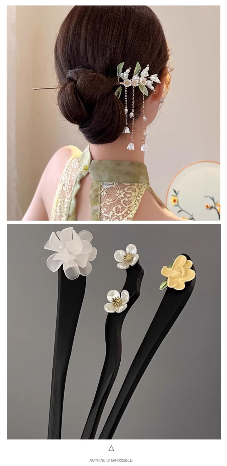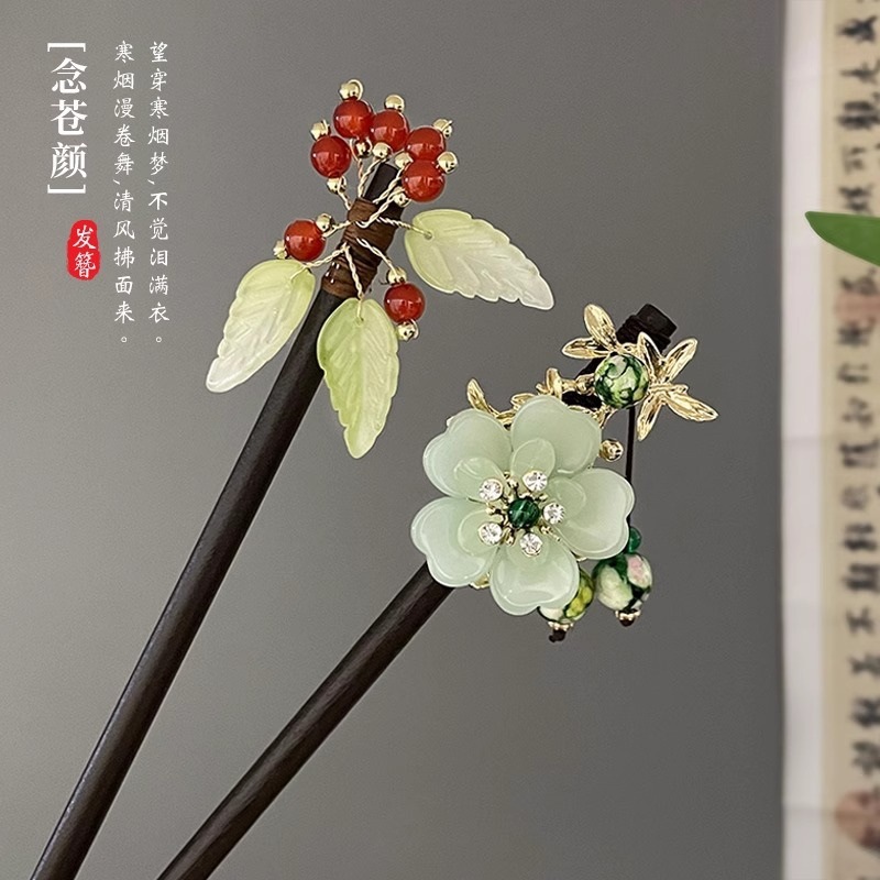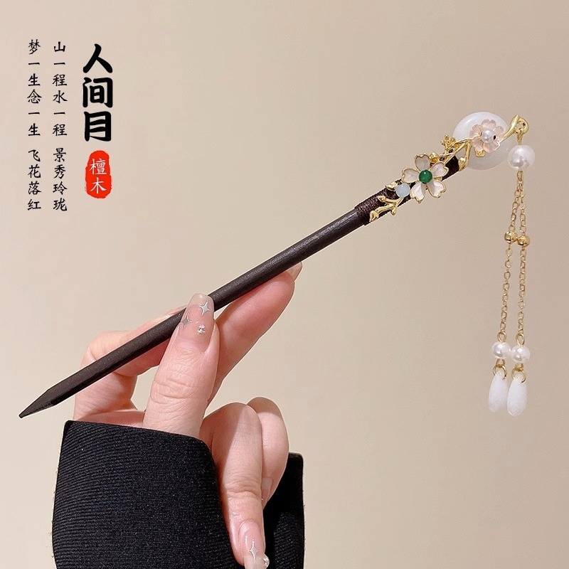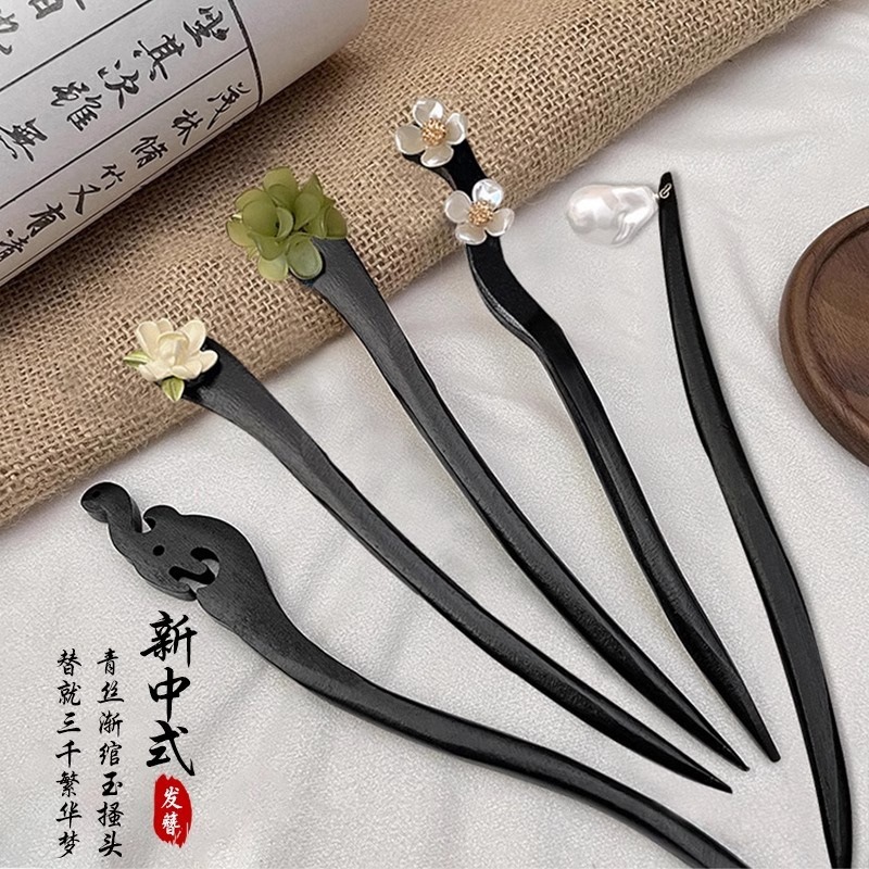 古风流苏木质发簪女新中式高级感簪子黑檀木盘发发钗简约现代头饰