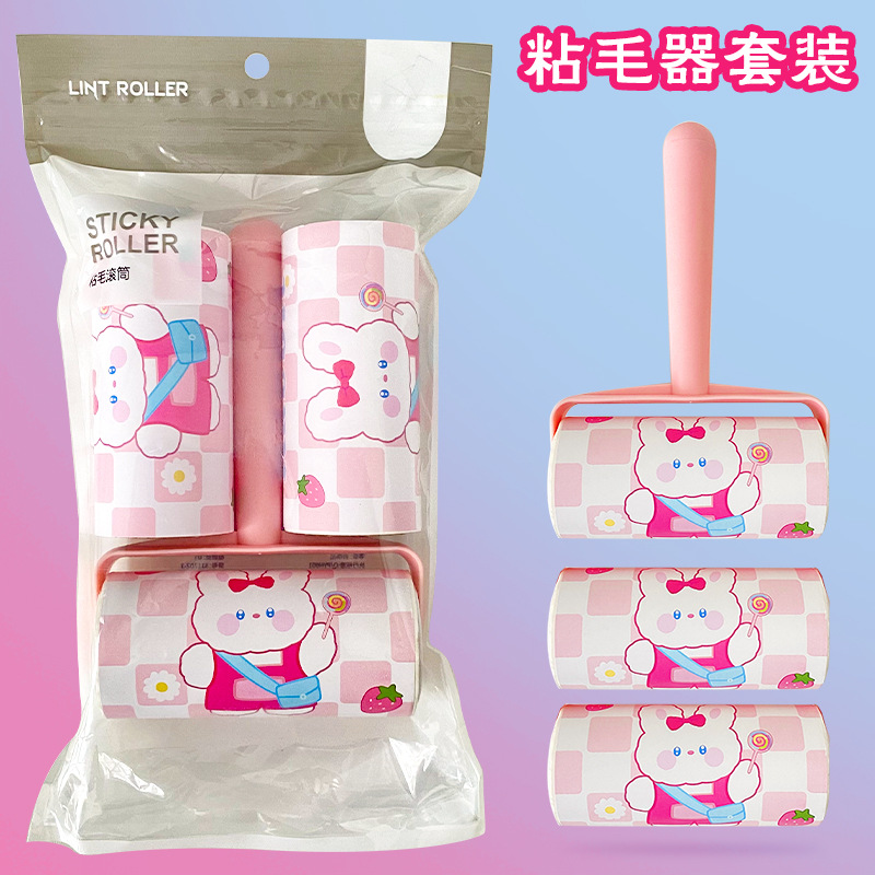 新款卡通图案粘毛器套装带替换装 可撕式衣物粘毛神器 滚筒粘毛器
