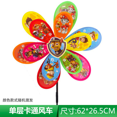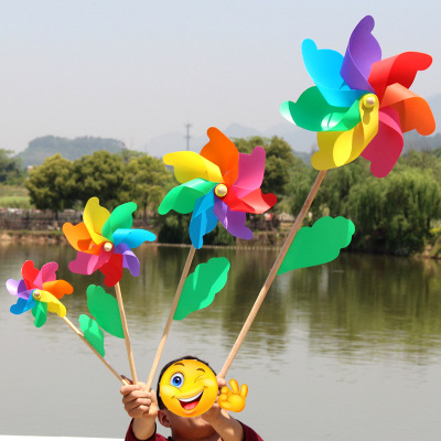 新款儿童七彩卡通三朵太阳花风车风车玩具批发老北京风车热销厂家