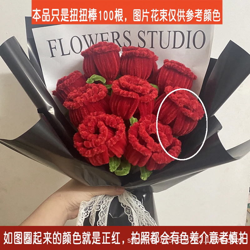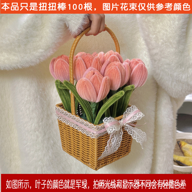 马卡龙色扭扭棒手工diy彩色毛根毛条加密郁金香花束材料包加粗