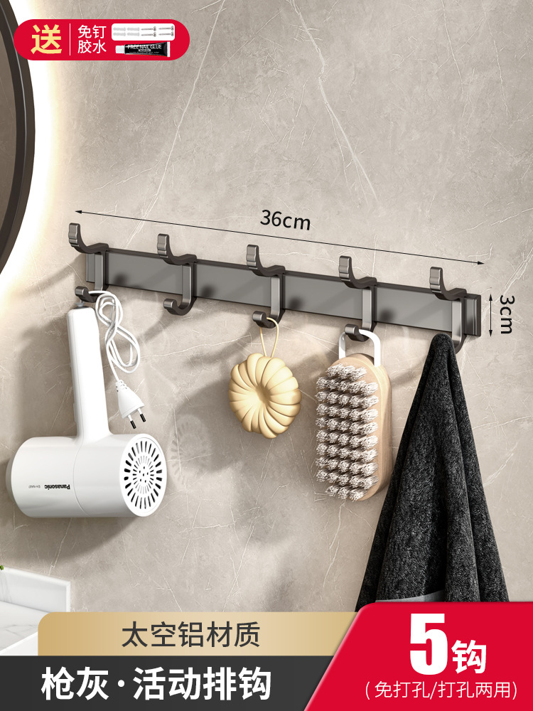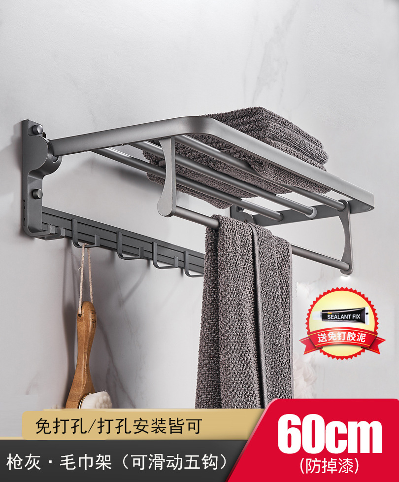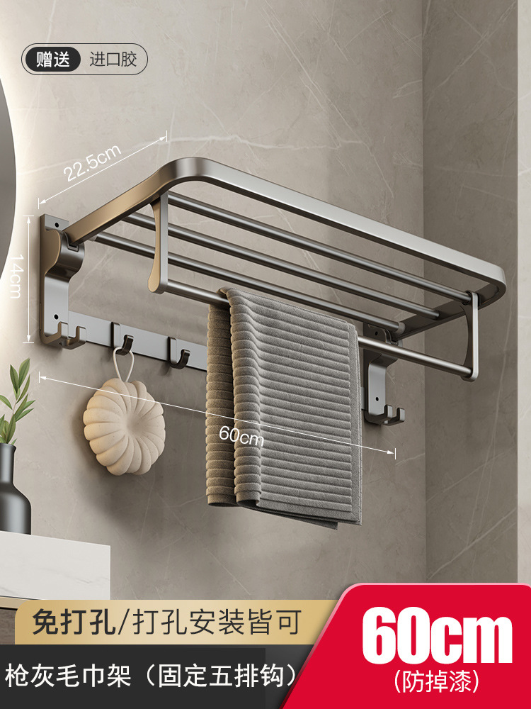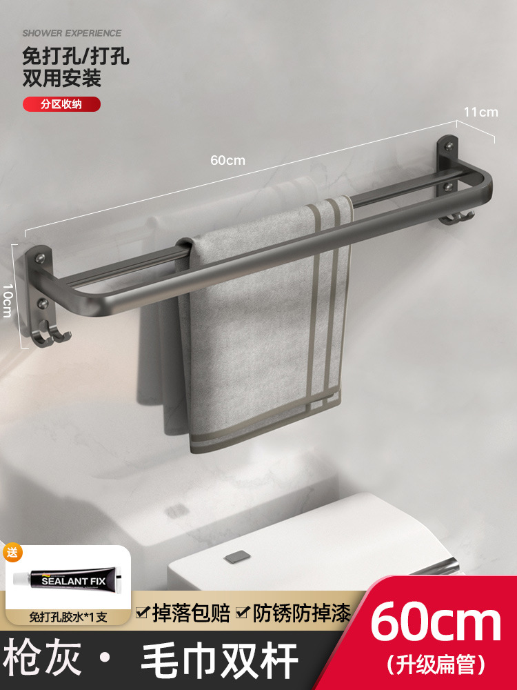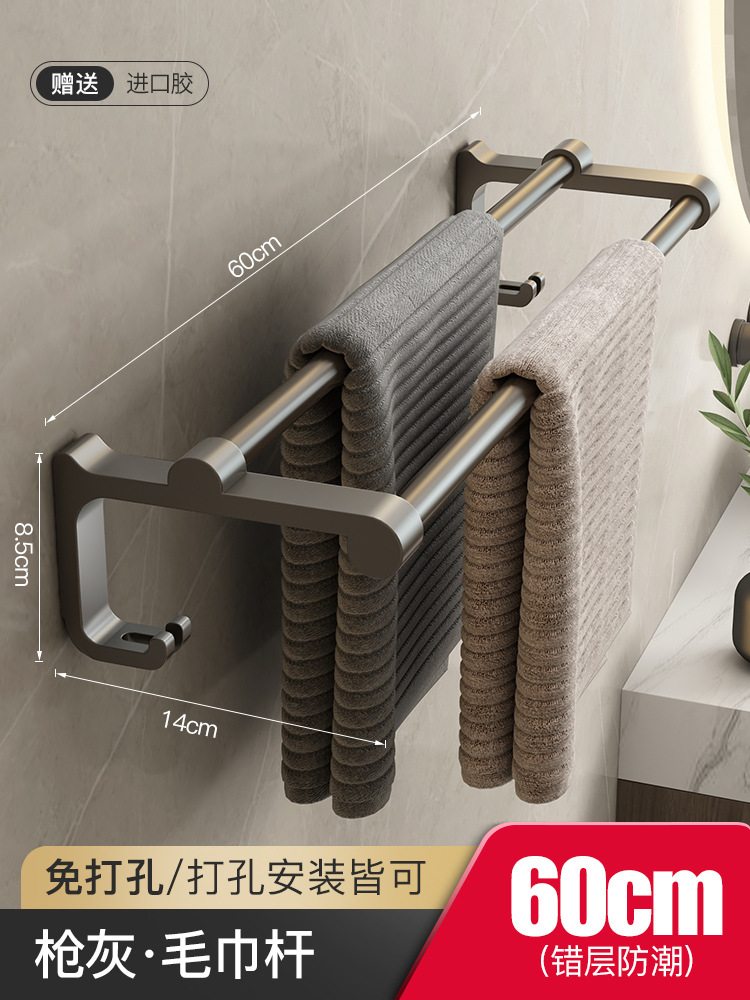 太空铝毛巾架免打孔枪灰色浴室置物架卫生间厕所浴巾架壁挂洗手间