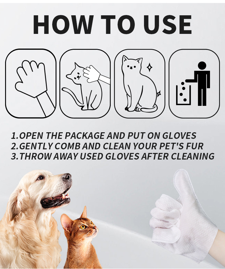 外贸跨境宠物用品宠物免洗手套猫咪狗狗清洁干洗手套一次性湿巾