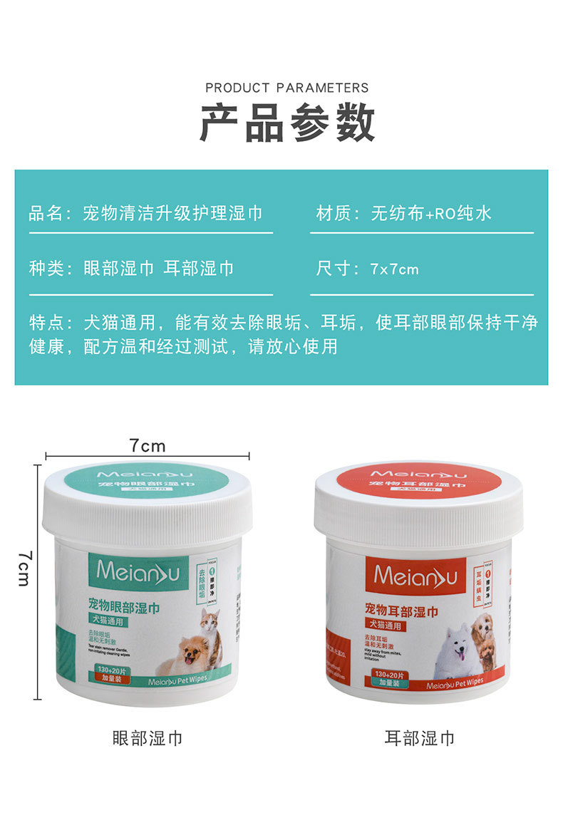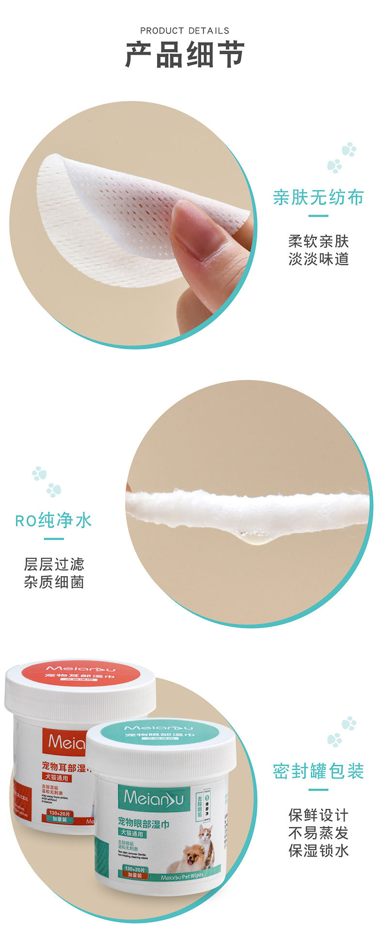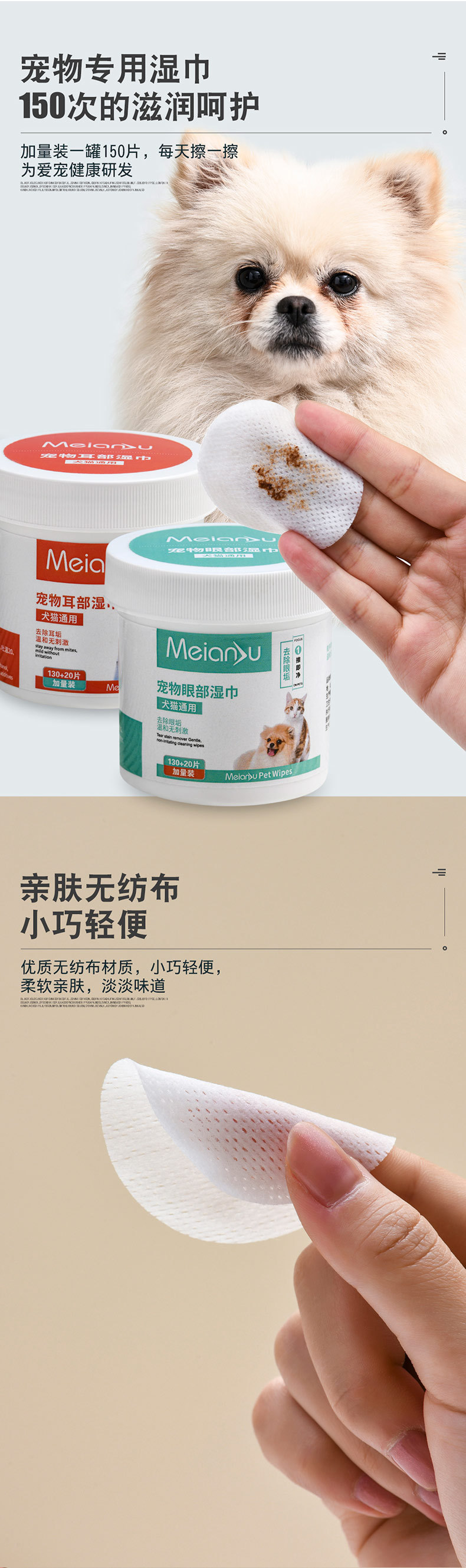 猫咪眼部耳部湿巾猫犬通用宠物眼屎擦眼睛清洁用品150片罐装湿巾