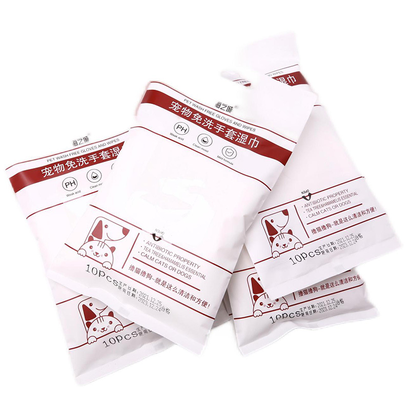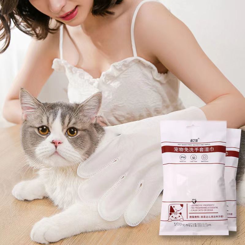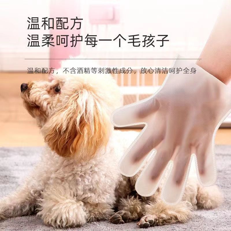 宠物免洗清洁手套湿巾10只装宠物洗澡撸狗猫清洁除臭速干一件代发