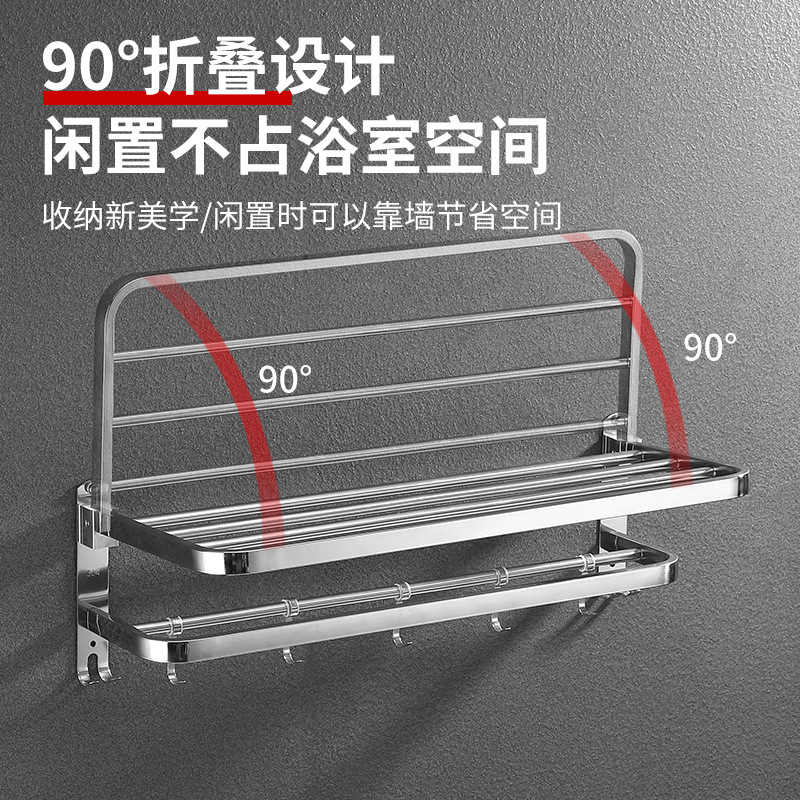 304不锈钢厕所毛巾杆壁挂置物架免打孔毛巾架卫生间浴室浴巾挂架