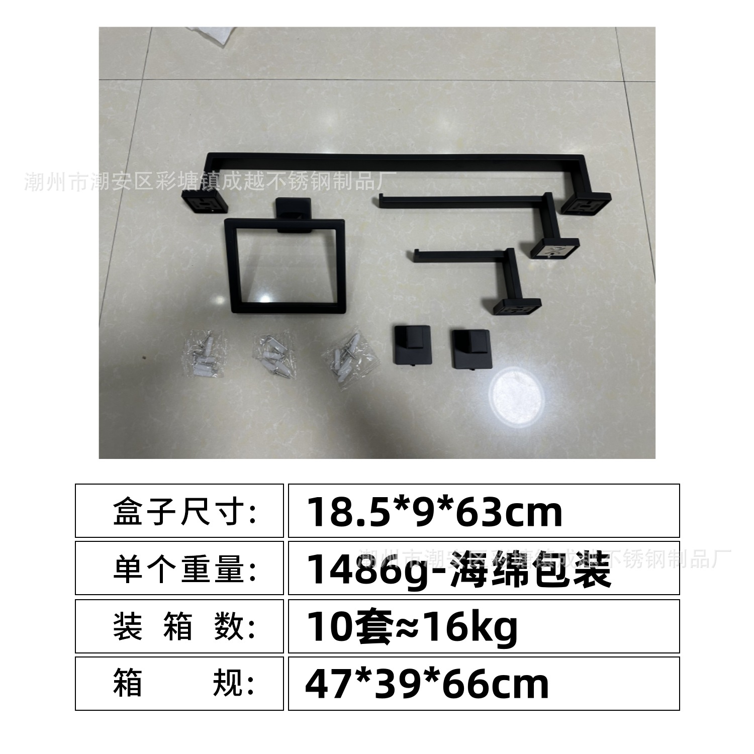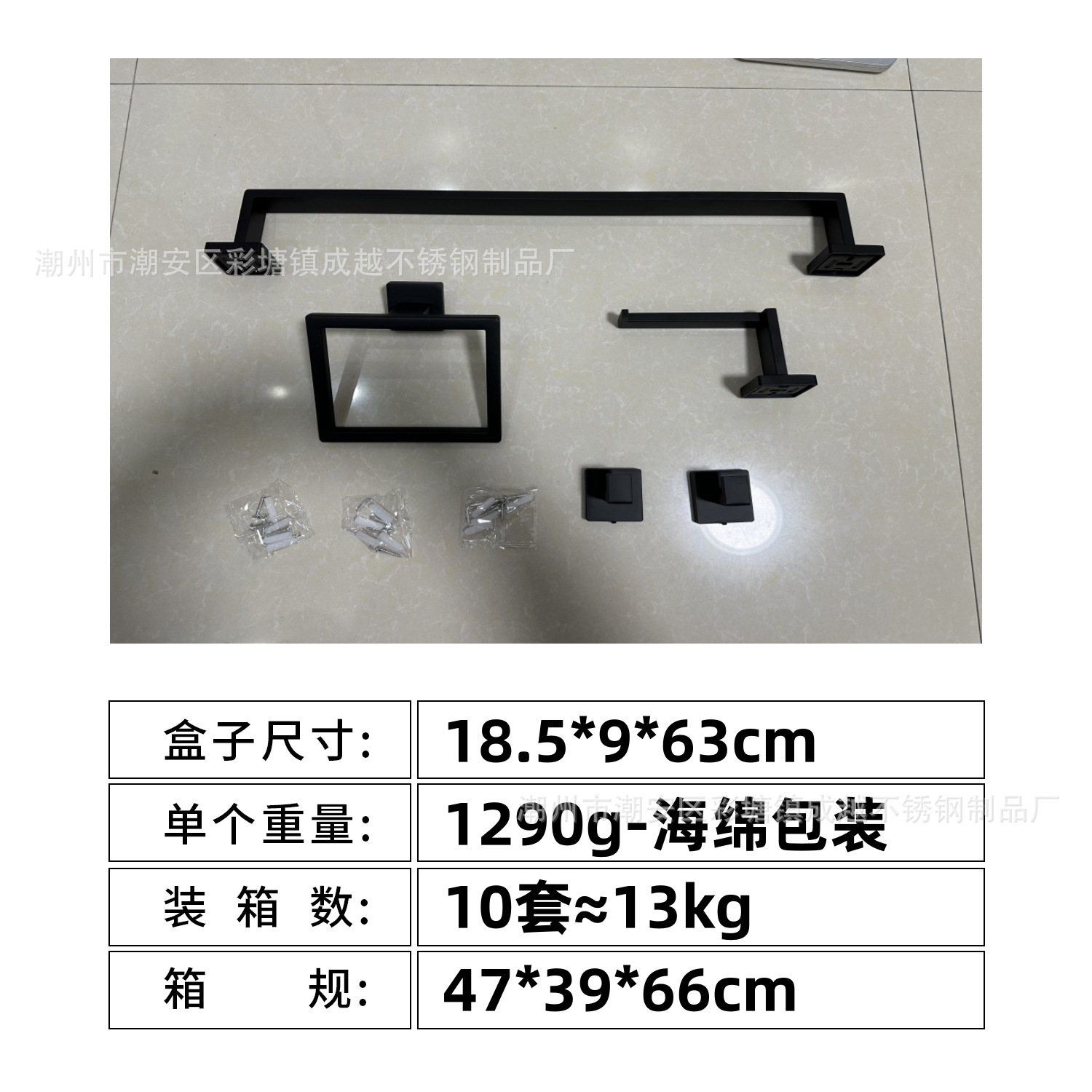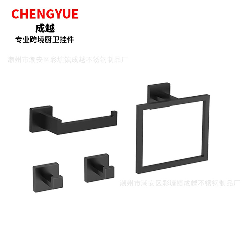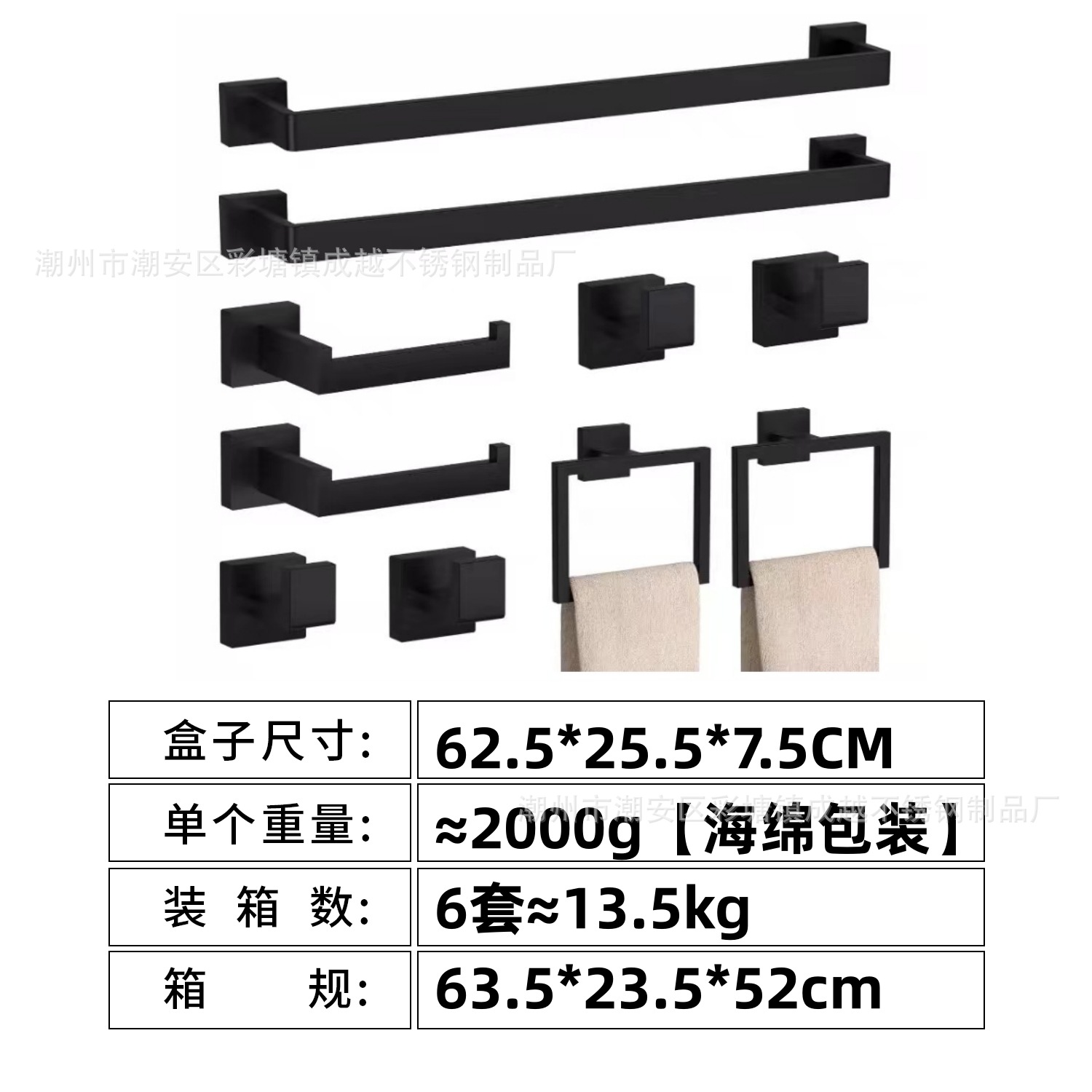 跨境方管毛巾杆套装不锈钢304方形毛巾环浴室衣帽钩浴室五金套装