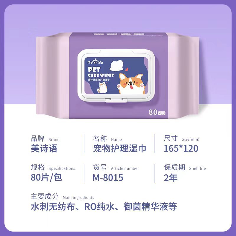 宠物湿巾纸80抽猫狗专用擦泪痕免洗除臭清理身体清洁湿纸巾批发