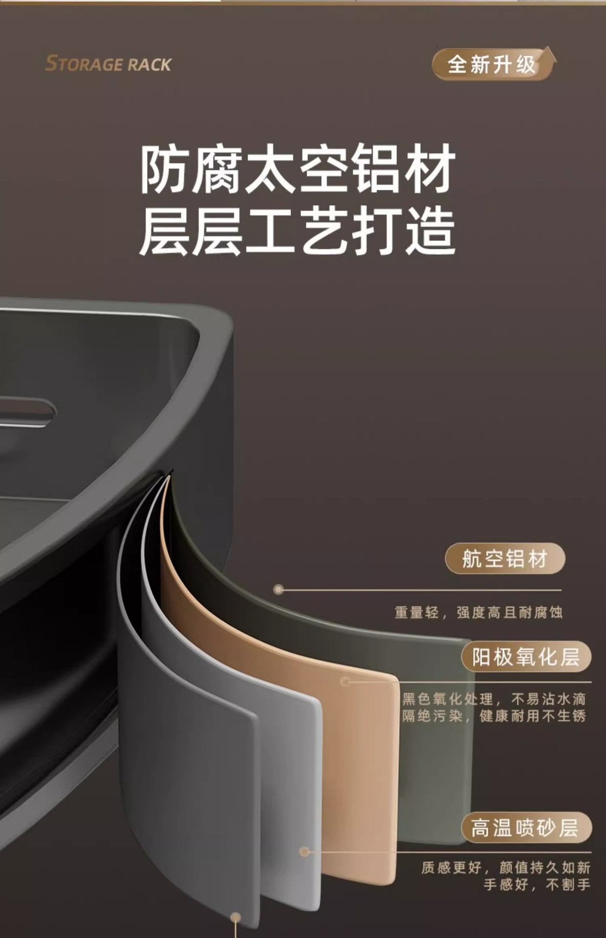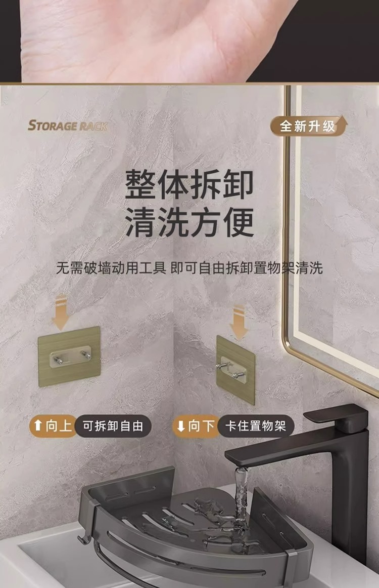 枪灰太空铝浴室置物架免打孔洗澡间壁挂三角篮卫生间挂架单层加高