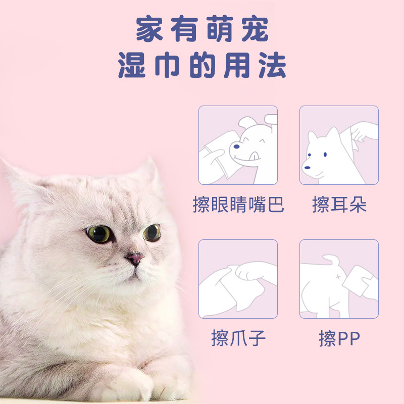 80抽大包宠物湿巾狗狗猫咪清洁免洗湿纸巾擦泪痕湿巾宠物用品