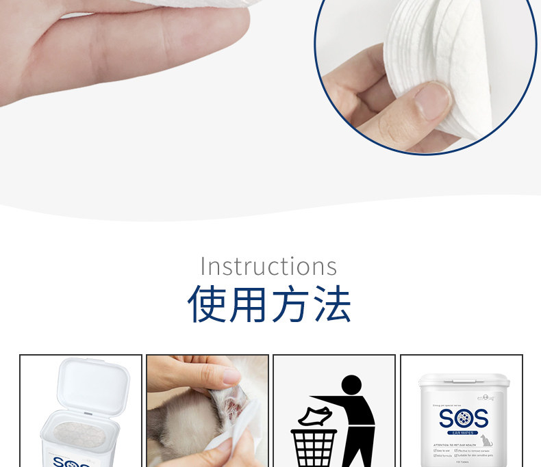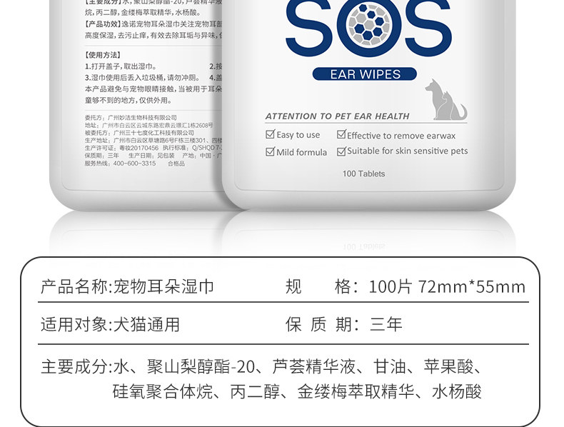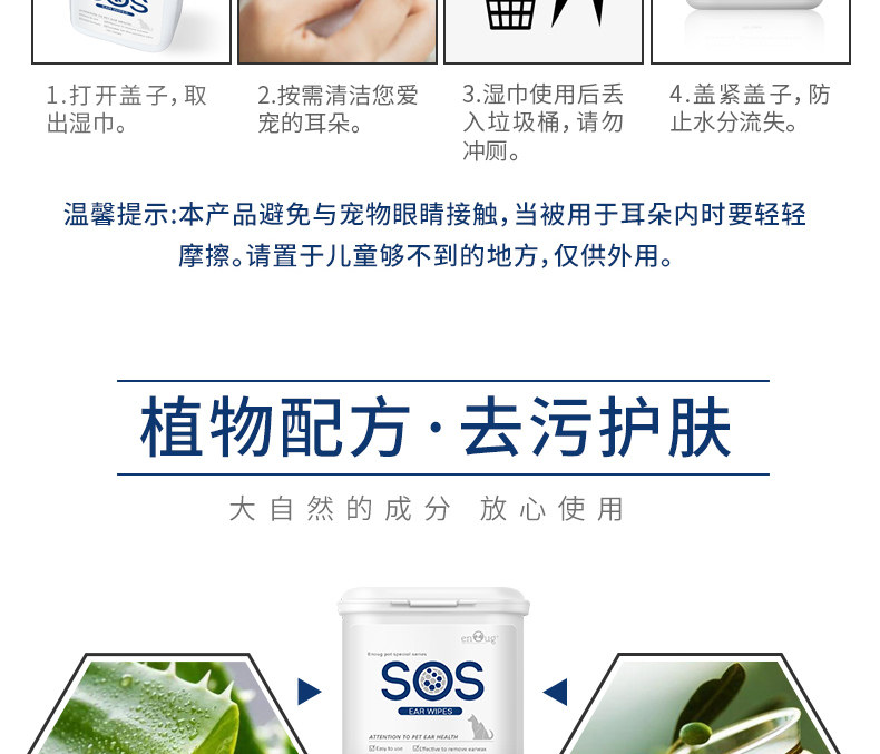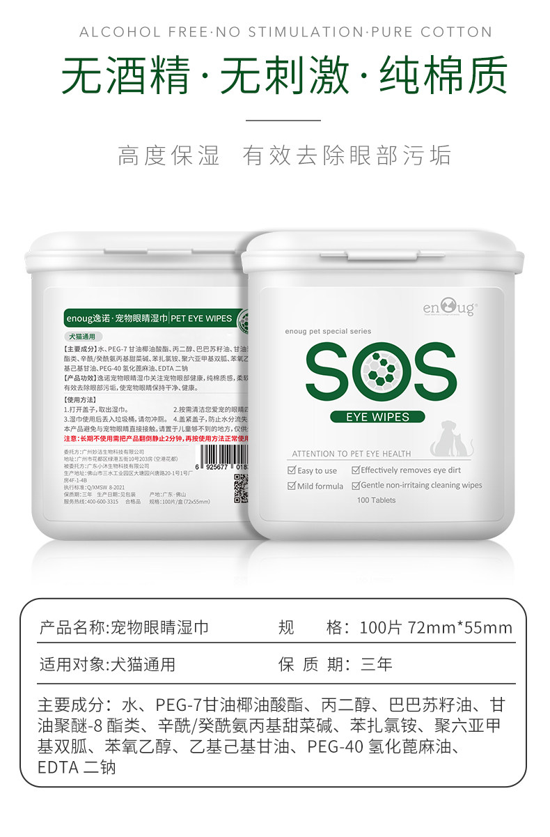 @逸诺SOS宠物湿巾100片狗狗猫咪眼部清理纸巾耳朵护理