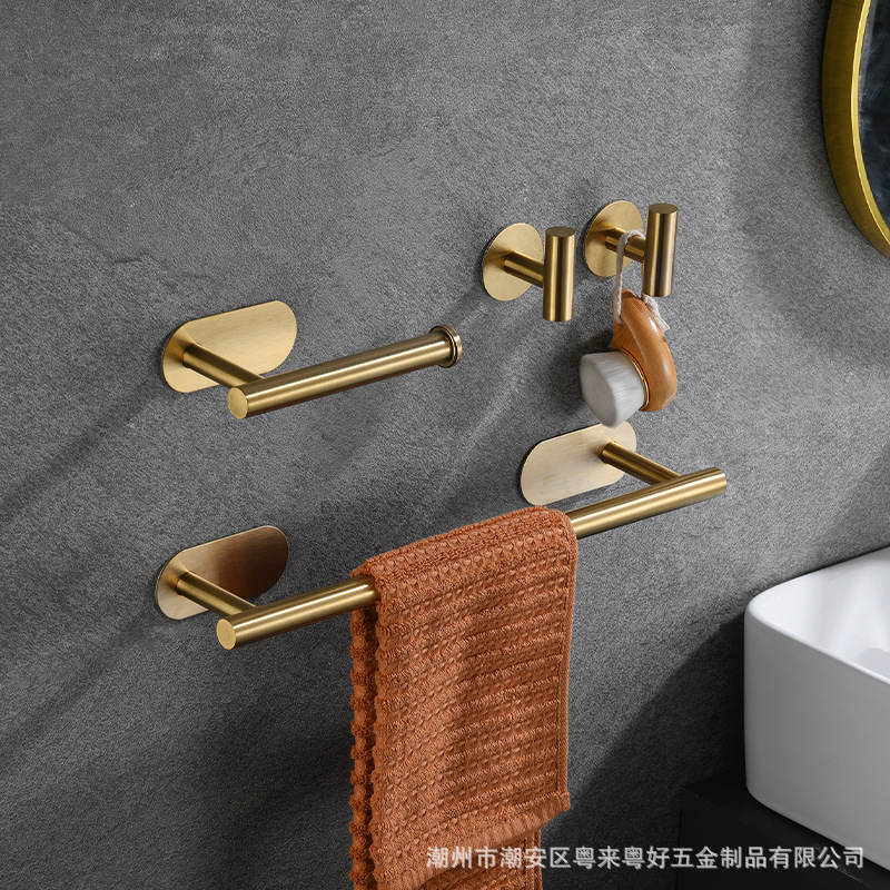 亚马逊毛巾架套装浴室壁挂收纳毛巾杆纸巾架挂钩免打孔浴巾架套装