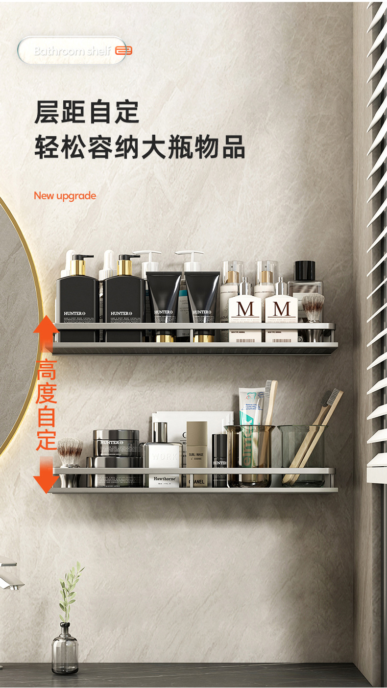 枪灰卫生间置物架浴室洗漱台免打孔壁挂式洗手间厕所阳台收纳架子