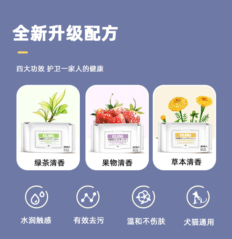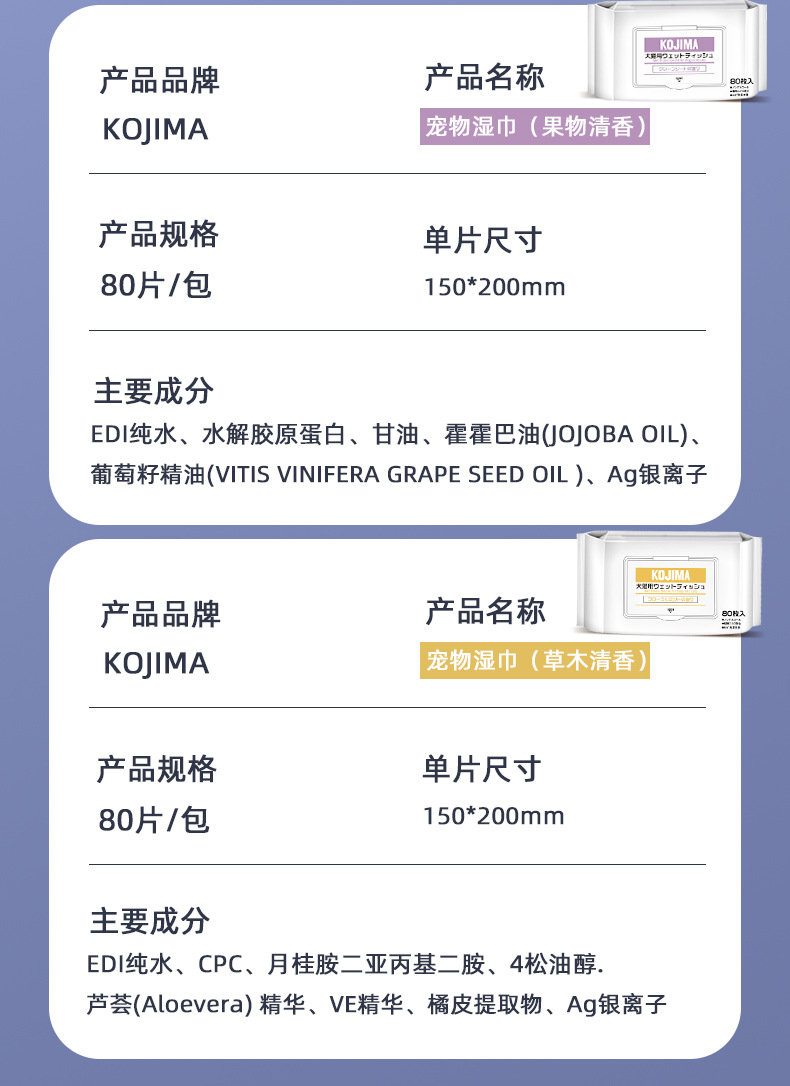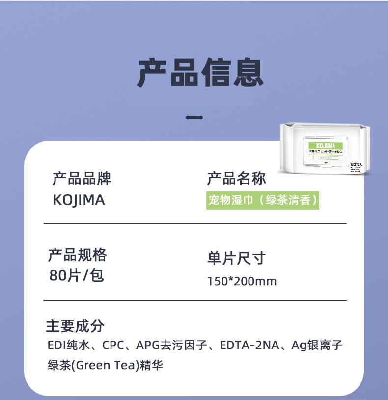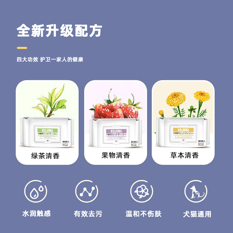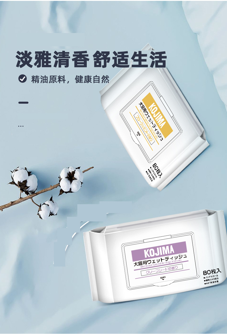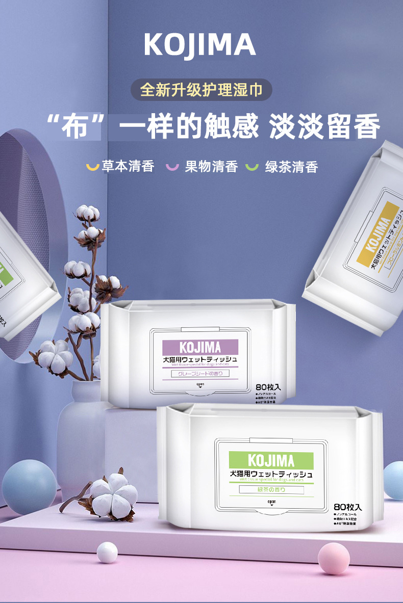 kojima湿巾纸宠物清洁猫狗专用擦眼部泪痕擦脚擦屁股除臭免洗护理