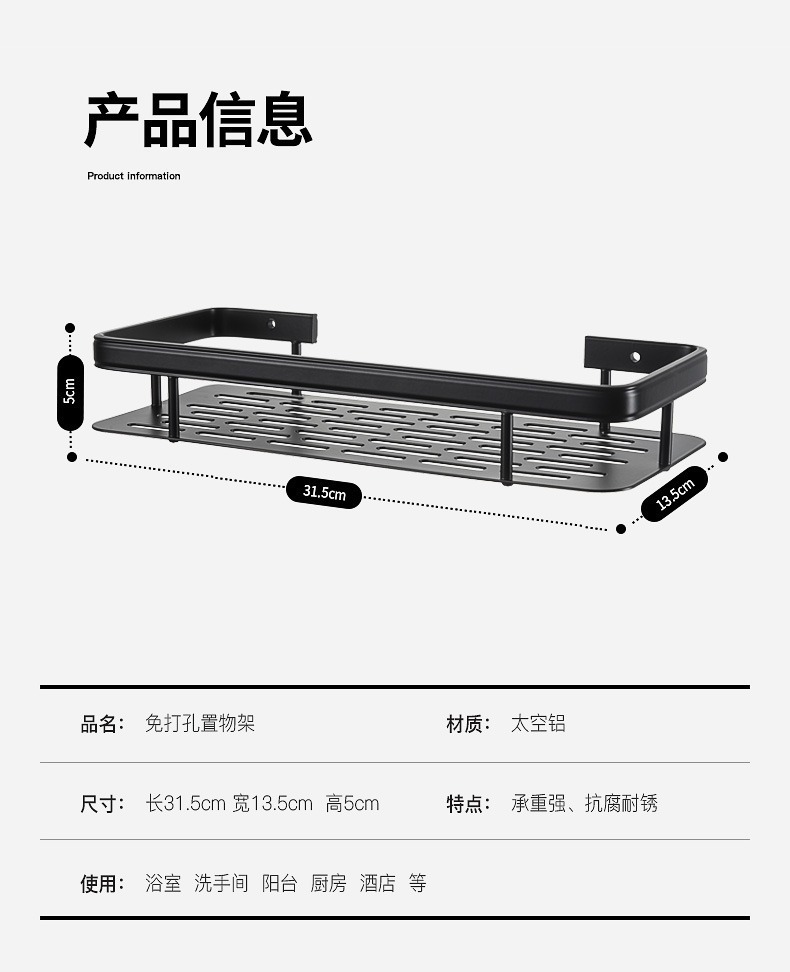 免打孔卫生间浴室置物架壁挂式厕所洗手间洗漱台用品墙上收纳架子