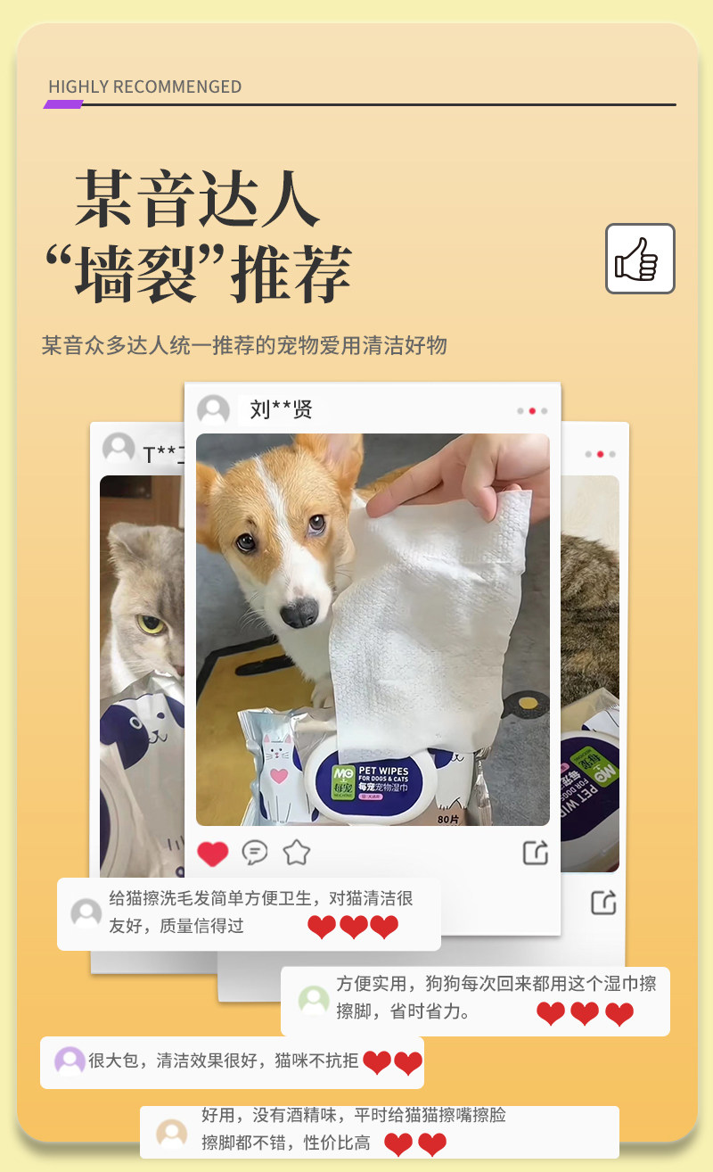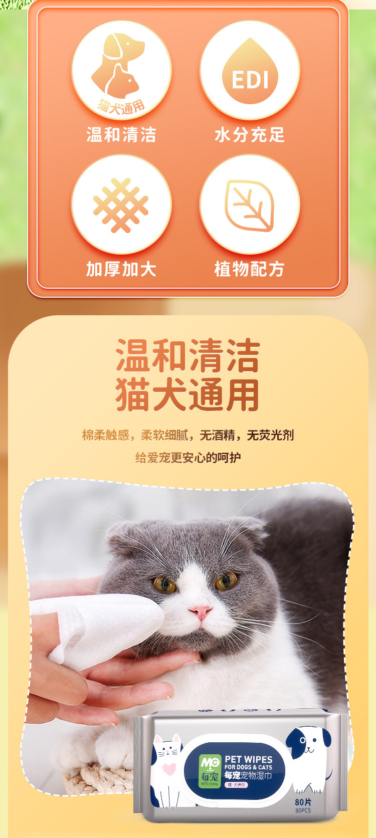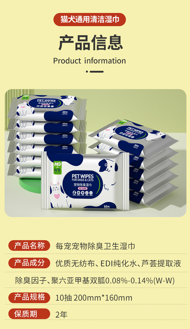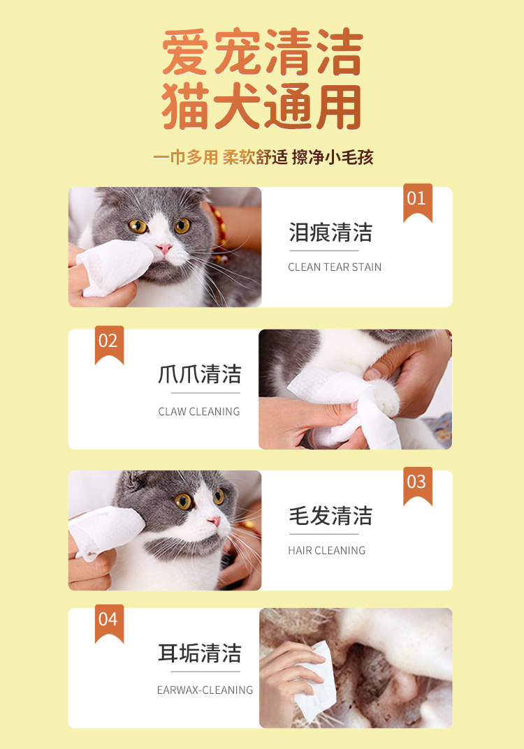 宠物湿巾猫咪狗狗专用护理除臭清洁擦手脚屁全身可用湿纸巾