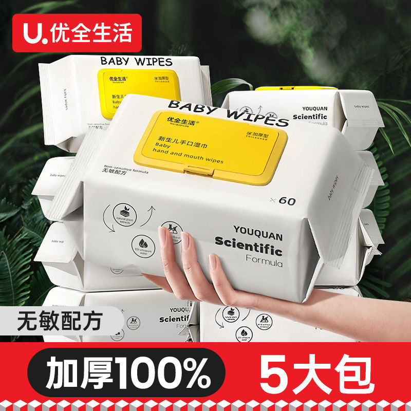 湿巾婴儿专用大包5包优全生活加厚湿巾纸带盖宝宝新生儿手口厂家